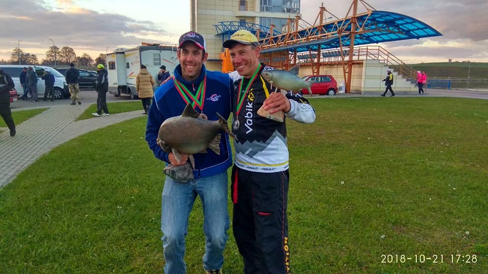 Для второго дня решено было сделать прикормку более инертной и долгоиграющей, чтоб уж вообще не кормить после старта видимо)))):D с этим мы немного перемудрили. А так, всё оставлено неизменным 50 % грунта, много "мяса" в старт, докорм не раньше, чем через три часа. Сектор выпал В25 по соседству с Иваном Кутищевым. Это было незабываемо))) Самый позитивный тур в моей жизни)))) Пока я там корячился, как же поймать больше всех рыбы, Ваня без конца травил шутки. Причём я никак не мог приблизится по темпу ловли к нему. Я одну поймаю, Ваня уже вторую тащит. Правда я не использовал его секретную насадку - три дождевых червяка, одетых поперёк. (Он мне сам сказал) Да и червяков то я в тур не взял....кто бы мог подумать, что будет на них брать. Опыт!!! Прямо скажем я летел как фанера часа два, мои соседи Иван Кутищев, и Андрей Санников из Мавера ловили лучше. И снова меня спас докорм....моих соседей. Удобно: кормят они, а ловлю в итоге я)))). Плотва пришла спустя 2-2,5 часа после старта. Во втором туре я так же делал две дистанции и придумал маленький лайф хак, ну или фиш хак))) Если подсечка на основной точке была не результативной, то я подматывал снасть на ближнюю точку и там не редко долавливал рыбку. И вот сейчас могу скорее всего предположить, что для победы не нужно было уходить далеко, а ловить именно на этой ближней бровке 17-18 метров от берега. (Глубина всё равно одинаковая.) но это как говориться не точно ;). Для взвешивания я доставал садок с уверенностью, что пропустил вперёд себя как минимум пару человек. Результат удивил, я снова первый в зоне. И в итоговом протоколе второй в личке. Сильнейшее выступление Рамона Пасманса не оставляло шансов. Ожидаемо хорошо выступил Серёга Комаров, который стал бронзовым призёром Меморала. Командный зачёт мы как могли тревожили, и надо сказать, почти ворвались на пьедестал, но считаю не хватило немного опыта подобных соревнований. В итоге наша команда: Шобиков Андрей, Цагойко Игорь, Щербик Дмитрий, Куприянович Андрей, разместилась на 4 месте, что тоже довольно сильно я считаю. Спасибо, парни, что пригласили, спасибо, что боролись, спасибо за правильную душевную атмосферу. Важную роль сыграл наш тренер - Виталий Пархомец, благодаря его координирующим действиям мы и смогли показать такой достойный результат.