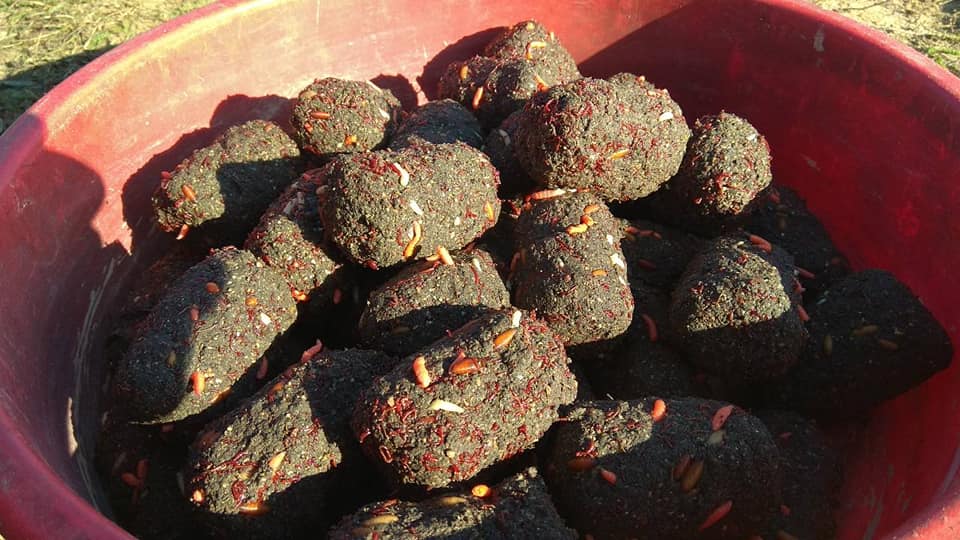 Второй день. Проанализировав результаты пришли к выводу, что докорм пугал крупную рыбу, но при этом активировал мелку. Пошли путем переувлажнения готовой смеси для долгой отдачи животины, которая в моём случае была увеличена, как собственно и сам стартовый закорм – 60% от общего объёма. Шары плотно сжатые. Докорм по ситуации, но в идеале растянуть до максимума. При этом нам не нравилась заславская земля, она рыхлила готовую смесь и уменьшал время распада, а заменить 2.5л на склейку глину не было возможным.
