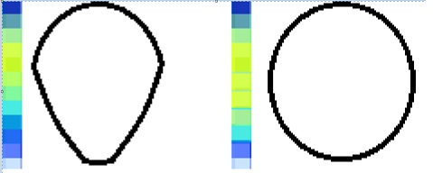В общем где ярче засветка, то там значит было сильнее отражение, а значит шире профиль. У круглого сечения будет примерно симметричный по яркости срез дуги.