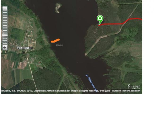 сетка стояла там где оранжевая линия, и лодка собственно стояла там же на берегу(она там всегда стоит - зеленая и металлическая)