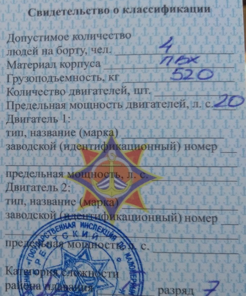 Что имеют ввиду работнеги ГИМС - одному Богу известно... Поэтому и интересно, как выглядит эта запись в судовом билете...