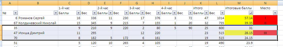 2) Пример по нашей балльной системе. 10 окуней по 20 грамм = 10х1 баллов+0.2 балла=10,2 балла. 1 окунь на 200 грамм = 1х10 баллов+0.2 балла "весовых" = 10.2 балла. Один окунь на 550 грамм = 20+0,6=20,6 баллов. Тут необходимо избегать возможной "бонусности" - чтобы не было варианта "ввалил халявного бонуса - и ты в призах". Рыбалка у нас - трудовая.