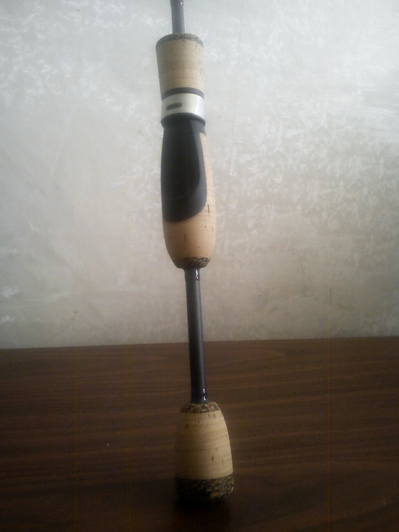 На спиннинге S661-2МНХ. Рукоять короткая, чуть более 20см.