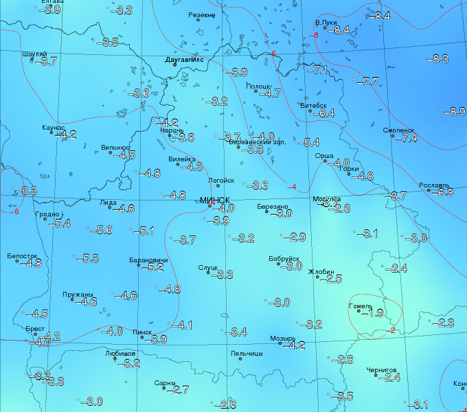 Солигорское почти сковало (в теме даже фоты есть), но выходить еще рано. По графикам, у нас на Солигорщине в среднем по больнице холоднее всего было.