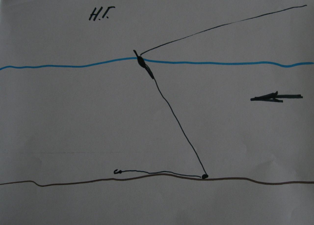 венечка, похоже, хотя это разные приемы ловли и снасти. Схематично моя снасть:Нажмите на изображение для увеличения.
