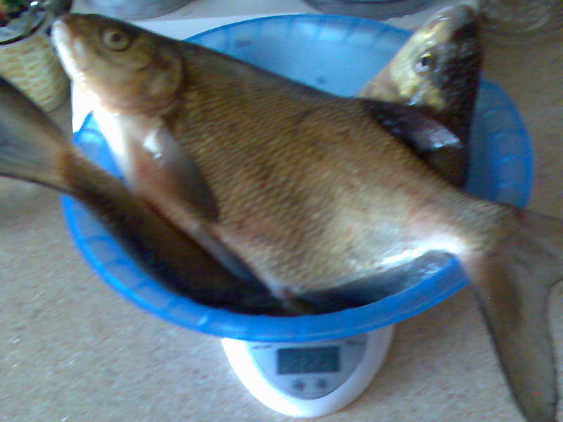 Сегодня решил повторить вчерашнее эльдорадо.Приехал и обомлел:o все перспективные места заняты.Прошёлся вдоль берега и понял,что тут нечего делать.Благо снасти ещё не доставал:cool:. Быстра в машину и подальше от ОБЩЕЖИТИЯ.Через пол часа на месте,первый закорм и долгие минуты ожидания.Спустя час первая уверенная поклёвка,пару секунд борьбы и полное фиаско.Даже не поднял на поверхность:(. А под водой уже целый пир,пузыри повалили полосами.Однако что я только не предлагал результат полный нольРешил сделать докорм,а заодно погонять уклею.Но и это не сработало,мелкие подергунчики и всё.Пока сидел и думал что в моих действиях не так,да придумывал себе глупые оправдания,мой поплавок плавно поднялся и так невзначай поплыл.От неожиданности аж поперхнулся чаем.Плавная подсечка и тут началось перетягивание кто кого.Сколько длилось не знаю.Но помня об утренним поражении,не торопился.И по закону рыболовного жанра подсачека не оказалось рядом.Медленно завёл рыбку на мель и всё.1-1 боевая ничья.Время беспощадно бежало и надо было собираться домой.Дома контрольное взвешивание и фотосесия;)Нажмите на изображение для увеличения.
