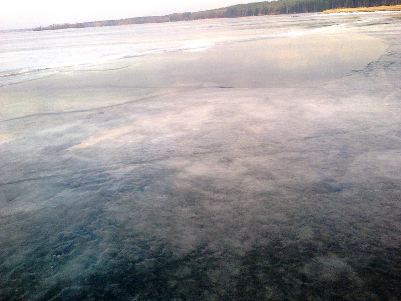 Верхний слой льда уже плохой. Толщина (в месте ловли) 15 см.