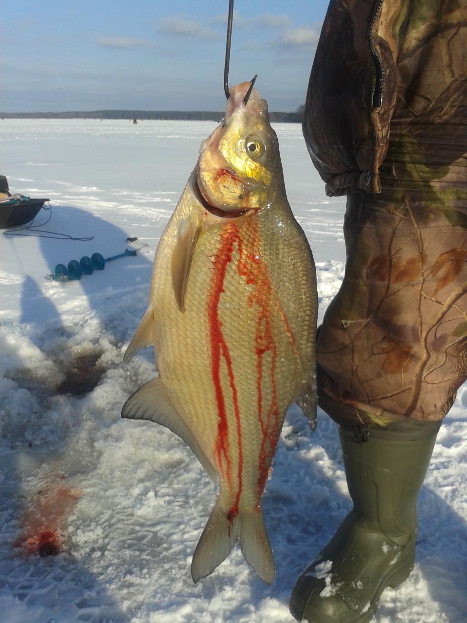 Вчера.С 9-00 до 18-30. С утра тишина(кормил 9 лунок,глубина 6,3-6,5 м). В районе 11-ти первая выкладка и сход в лунке среднего подлеща. Затем немного стало поклевывать на 1-го мотыля колечком.В 16-30 сосед достал "кабанчика" на макароны(бегал с багориком на помощь).Нажмите на изображение для увеличения.
