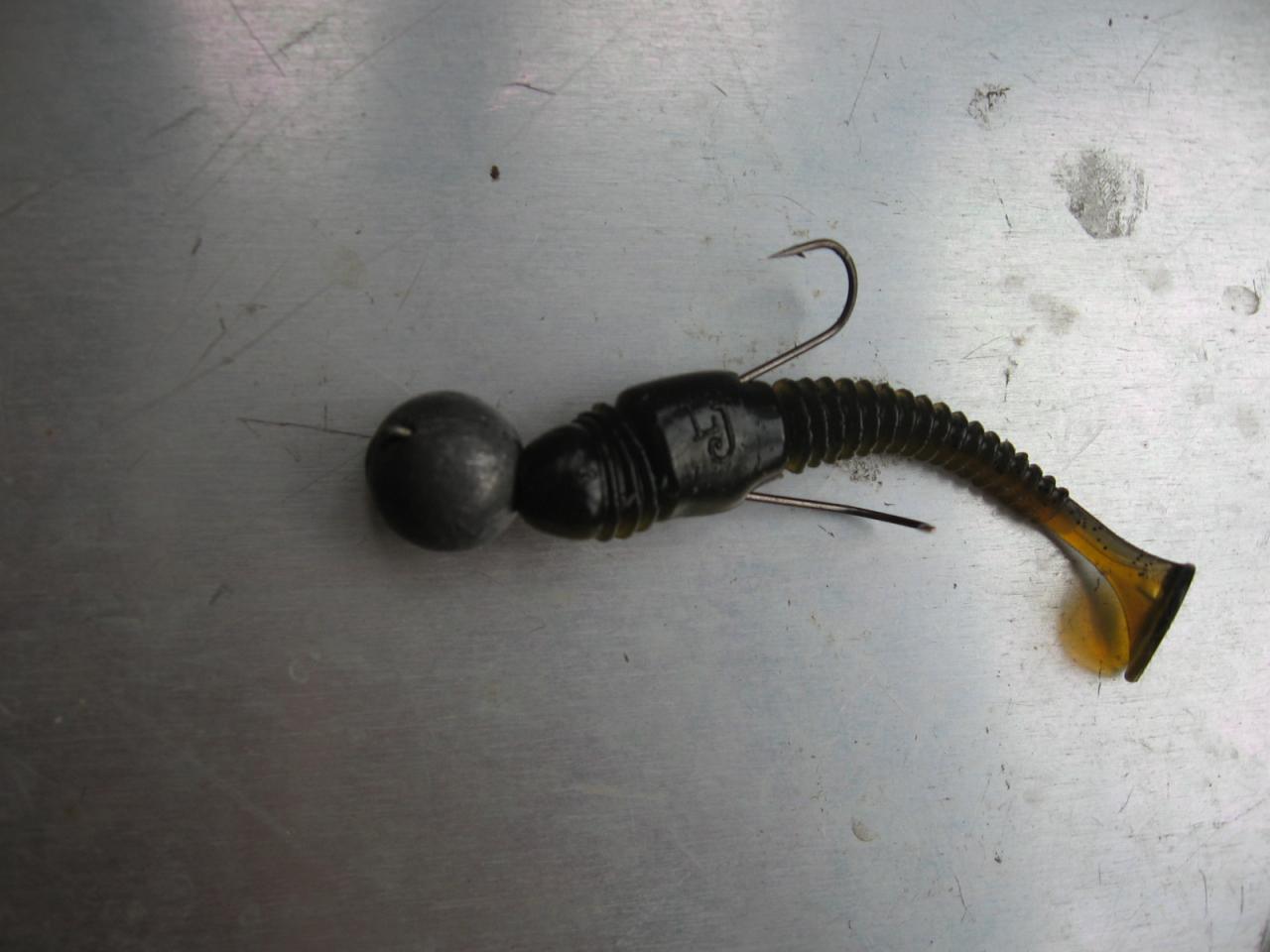 Второй судак взят в 21-10.Упираюсь в поролонку,так как еще было за 15 минут 4-5 поклевок,но не засекается и все.Ставлю снова съедобку и хоп,возле известного мне корчика(подводную акваторию уже кажется знаю на этой банке наизусть,за 3 часа маслания выучил уже не плохо) прижим,подсекаю и понимаю,что там сундук,я к себе кручу,а он тоже катушкой работать хочет,сдаю фрикционом метры,перетягиваемся туда-сюда и сход,обидно,не более 7-9 метров удалось отвоевать у монстра,сколько в весе вообще сказать не могу,но солидняк был...выматываю снасть и вижу,что меня предало..