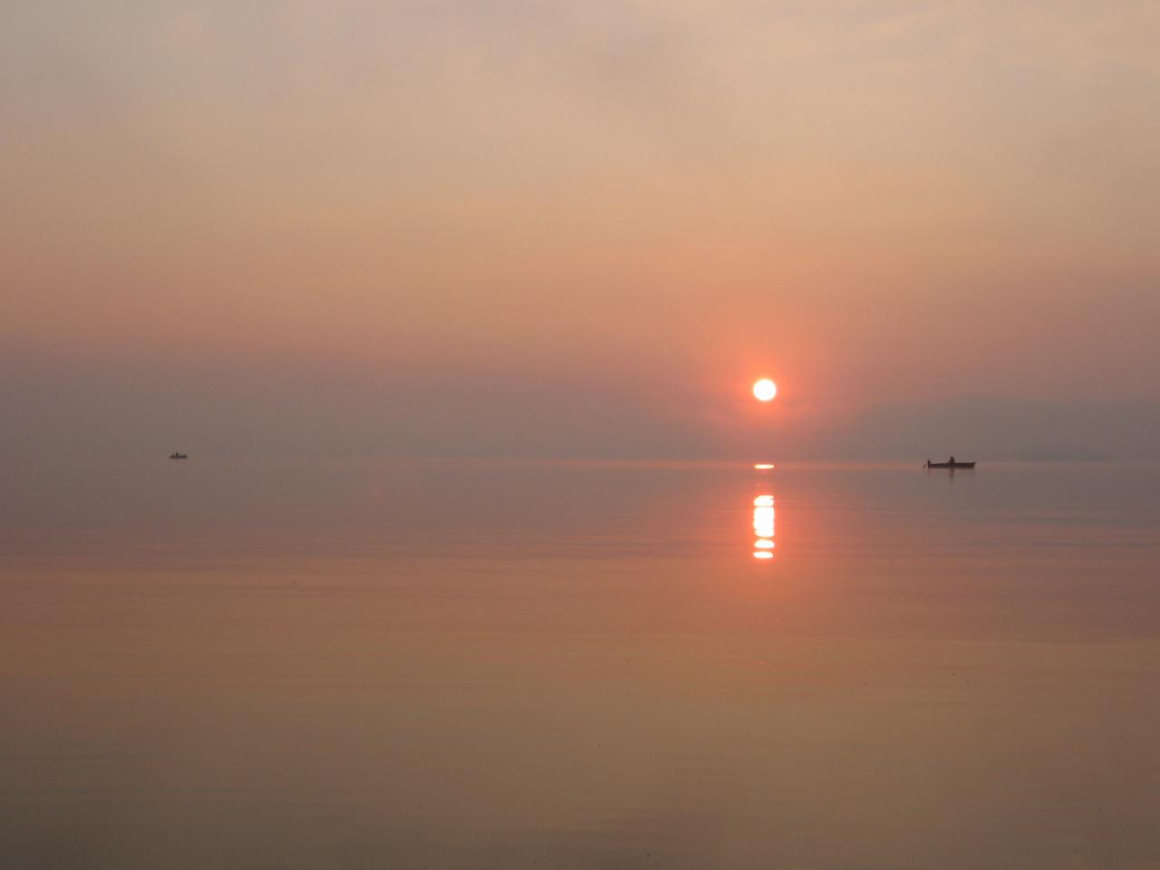 20 минут, а поклевок нету,переезжаю на 30 метров и становлюсь так,чтобы проводки были с мели на глубину и склон неосвещенный солнцем,а рассвет уже в самом разгаре.Немного отвлекся на красоты,еще успел посчитать экипажи,со мной набралось 14..