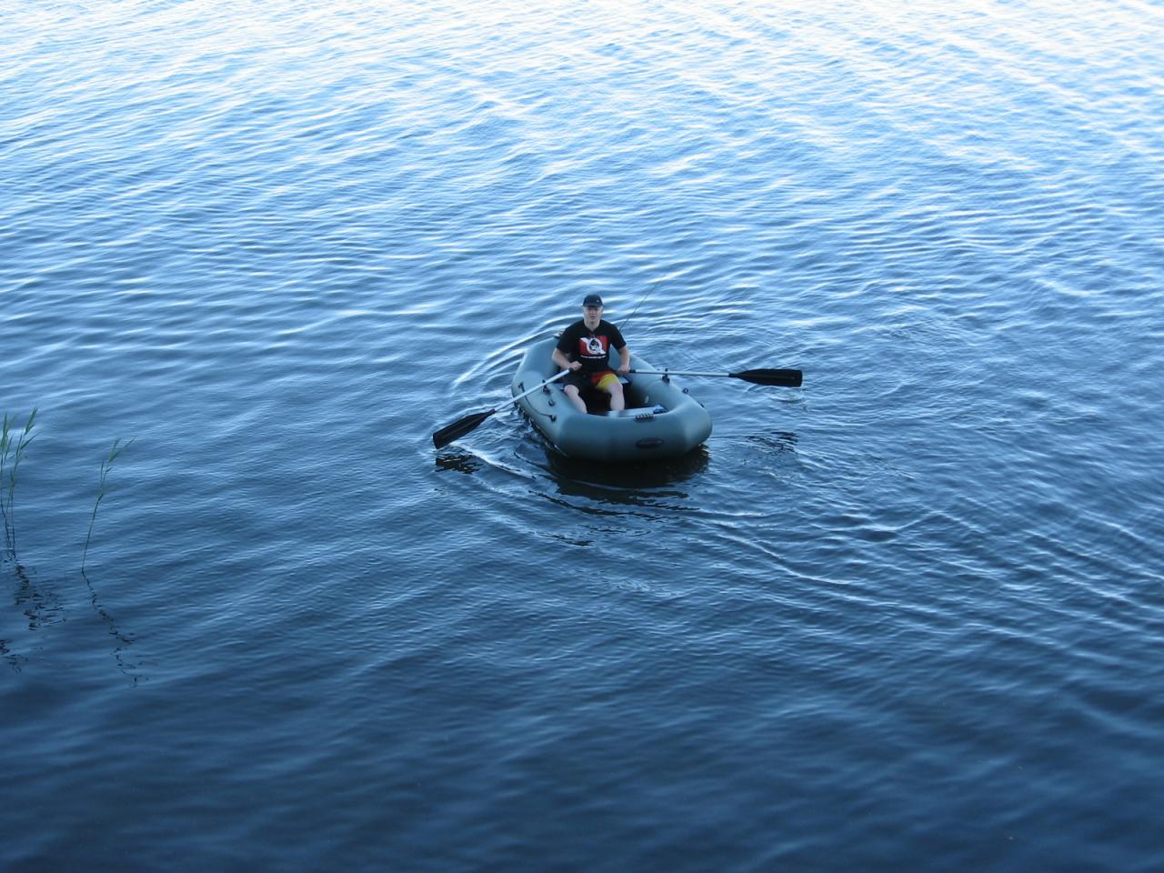 И только около лодки увидел, что ни фига не 2. Бревнышко приличное. При подъеме в лодку сломал ручку подсака (китайцы, маму их). На кукан еле посадил.