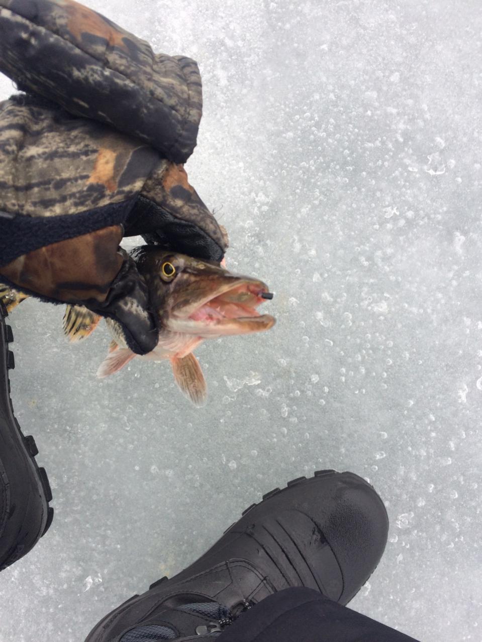 Ветер конечно жесткий играть чертом получалось плохо. Теперь по клеву если рыба есть под лункой, то почти сразу с первой проводки поклевка, но высоко не ниже 40-50 см от дна. Очень много судачков один влетел почти зачетный около полкилограмма мелкие же берут настолько жадно, что без приспособления черта не достать.
