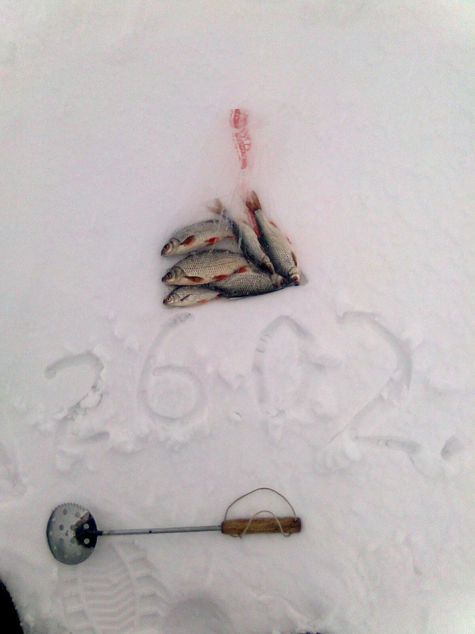 • Сегодня несмотря на погоду решил посетить ММ. 8:30 вышел возле Юности метров за 500 от берега. Законом сухари, семки и покупная на плотву. Глубина 3 м. Крючек с репейником. С одной лунки штук 10 за полчаса плотвы грамм по 100. Потом бегом по всем, и с каждой по одной. Часов с 15 опять на одной засел и до победы. В общем целом кг 2.5 насобирал. Промерз до мозга костей, но удовольствие получил. С утра до вечера компания на противоположном берегу танцы с музыкой устроили, с распитие и т.д. аля на рыбалке))). Всем нхнч!!!