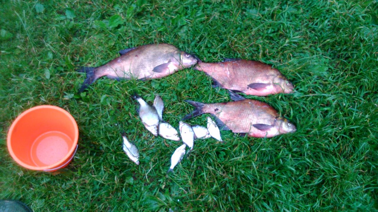 • Хоть писать особо нечего, но поскольку после долгого перерыва выбрался - отчетик. Приехали семьей в субботу часам к 11 отдохнуть под шашлычок. Я 2 фидера поставил. Боковой ветер, волна, кончики сильно болтает. Но сразу хорошая поклевка, фанерка-сотка. А потом перерыв на час, даже мотыля никто не обсасывал. Короче, редкие раз в час поклевки, 4 подлещика одного года рождения и 1