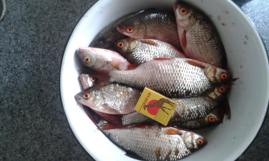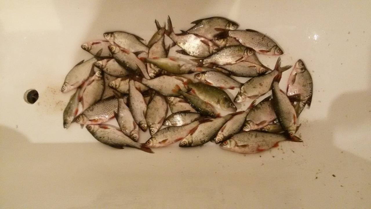Перевыполнил. Всего 52 штуки. 2 окуня, хорошая уклейка, карасик и 48 плотвы. Средний вес рыбок примерно 115 гр.
