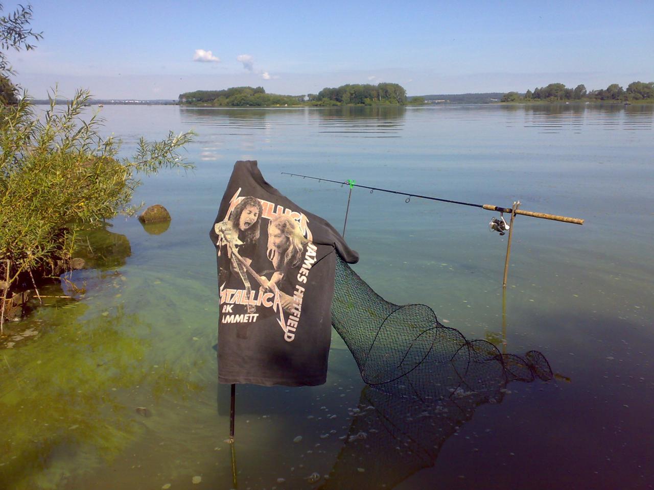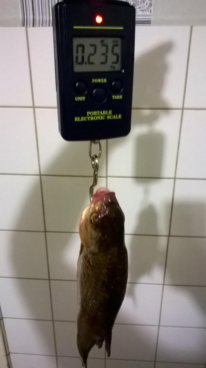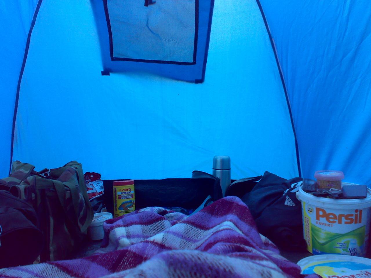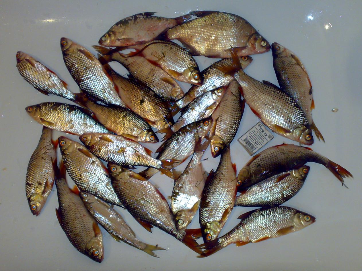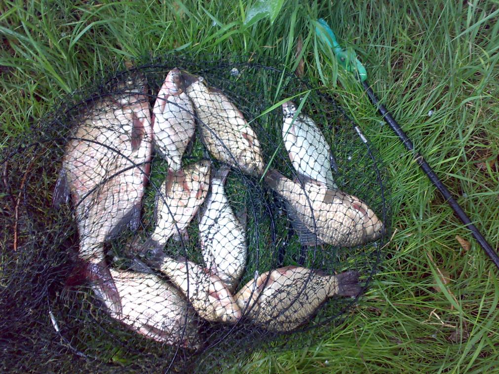 Ночью не ловил, спал в скрутку в палатке-зонте у снастей:) У приятеля, он стойче держался, у него ж не годовщина и тельце моего поёмче;), среди ночи на червя - два карасика, полкило и поменьше, несколько плотвин. Наживок он перепробовал всяких с насадками, на клёве особо не отразилось. Я традиционно кроме сала рыбе ничего решил не показывать. Нет-нет, да и зарилась плоточка на сало. В воскресенье до вечера 19 плотвин и одну фанерину в садок собрал. Общий вес улова 2,2 кг весы зафиксировали
