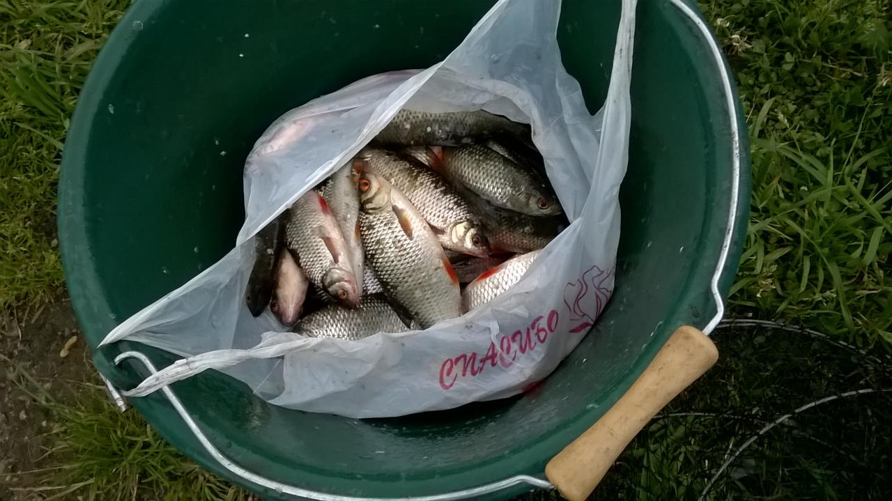 Ночью не ловил, спал в скрутку в палатке-зонте у снастей:) У приятеля, он стойче держался, у него ж не годовщина и тельце моего поёмче;), среди ночи на червя - два карасика, полкило и поменьше, несколько плотвин. Наживок он перепробовал всяких с насадками, на клёве особо не отразилось. Я традиционно кроме сала рыбе ничего решил не показывать. Нет-нет, да и зарилась плоточка на сало. В воскресенье до вечера 19 плотвин и одну фанерину в садок собрал. Общий вес улова 2,2 кг весы зафиксировали