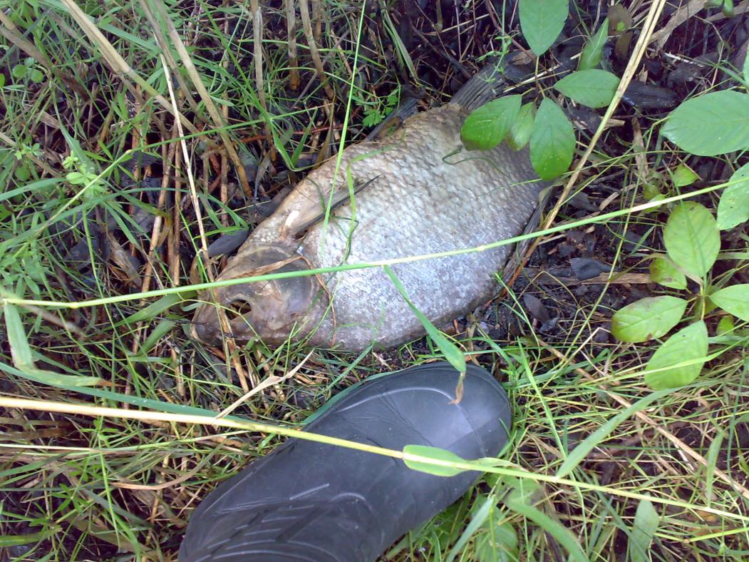 и уход в траву.Подсечка и буруны пошли.Но мы-то без поводка,спецом готовились. Дал натяг,стоит,ну и я жду.Потиху сам траву вырывал,так и завёл ,хотя в конце уже и не уверен был- есть ли что в этой охапке,с трудом влезшей в подсак.