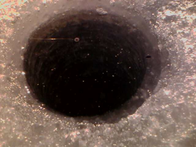 Сегодня побывал за островами. Погода просто отличная, а вот клев совсем никудышный, к тому же еще и рыбу не нашел. Хочу всем довести свое видение состояния льда. Он еще вполне держит конечно, но..сравните на фото толщину и степень разрушения, оба фото сделаны в один день, только на разных участках, расстояние между лунками около 10 метров. Толщина льда на фото 0572 чуть больше 10 см.