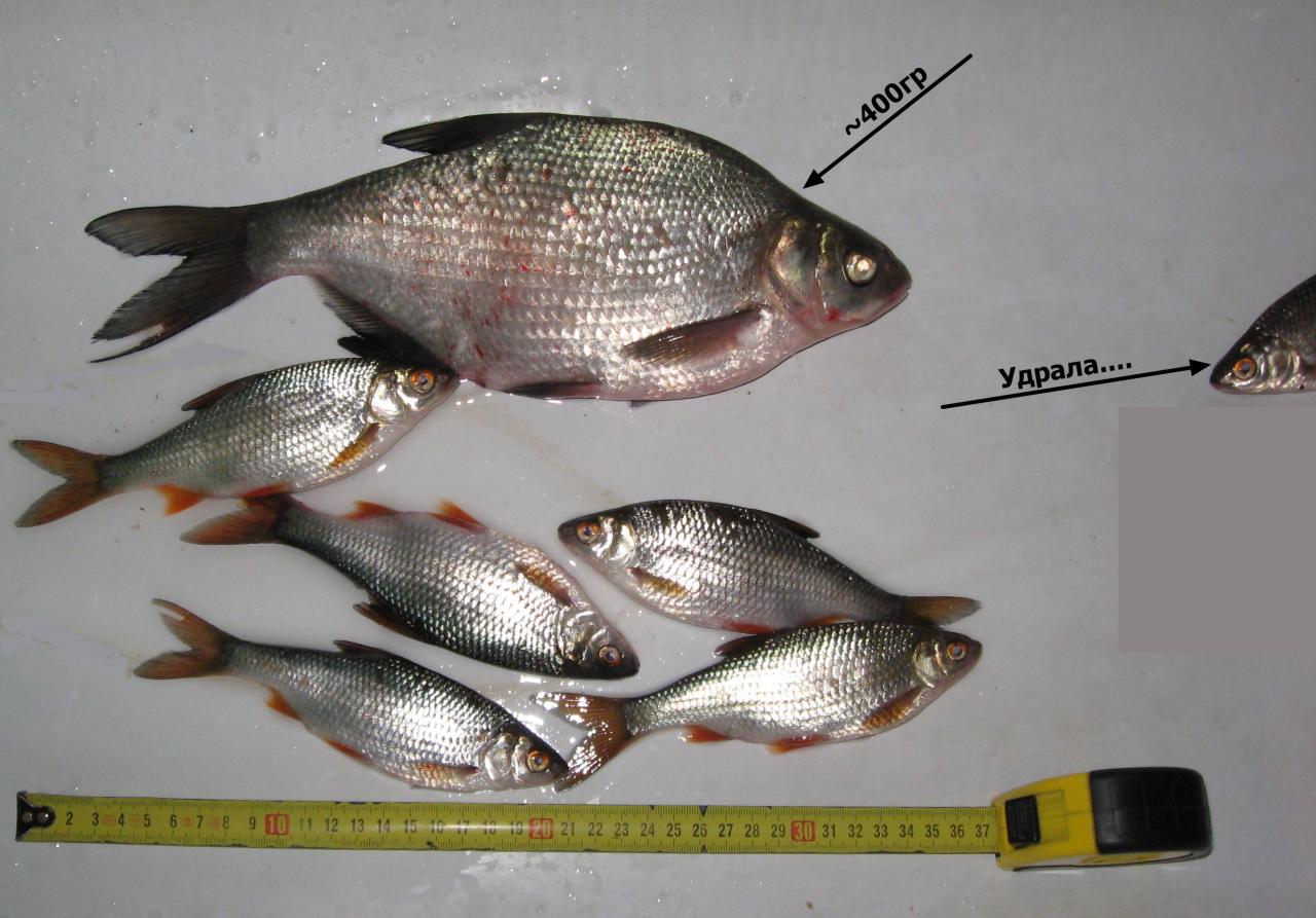 Привет всем. Сегодня рыбачил с отцом возле дамбы. Как обычно с самого утра за сверлились, за кормились и около 9.00 начали пробовать ловить. Первые 20-30 мин. ни поклевки. После смены очередной лунки у отца проклюнулось ), 5 подлещиков (2 из них довольно не плохие). У меня только ерш. Сменив еще пару лунок и у меня подлещик на гр.300 на льду, больше поклёвок не последовала. Перейдя на очередную лунка, сразу поклёвка и плотва на верху и опять тишина. Так весь день, пришлось мне с отцом бегать по лункам, 1 максимум 2 рыбы и все. За день на двоих вы мучили штук под 40.