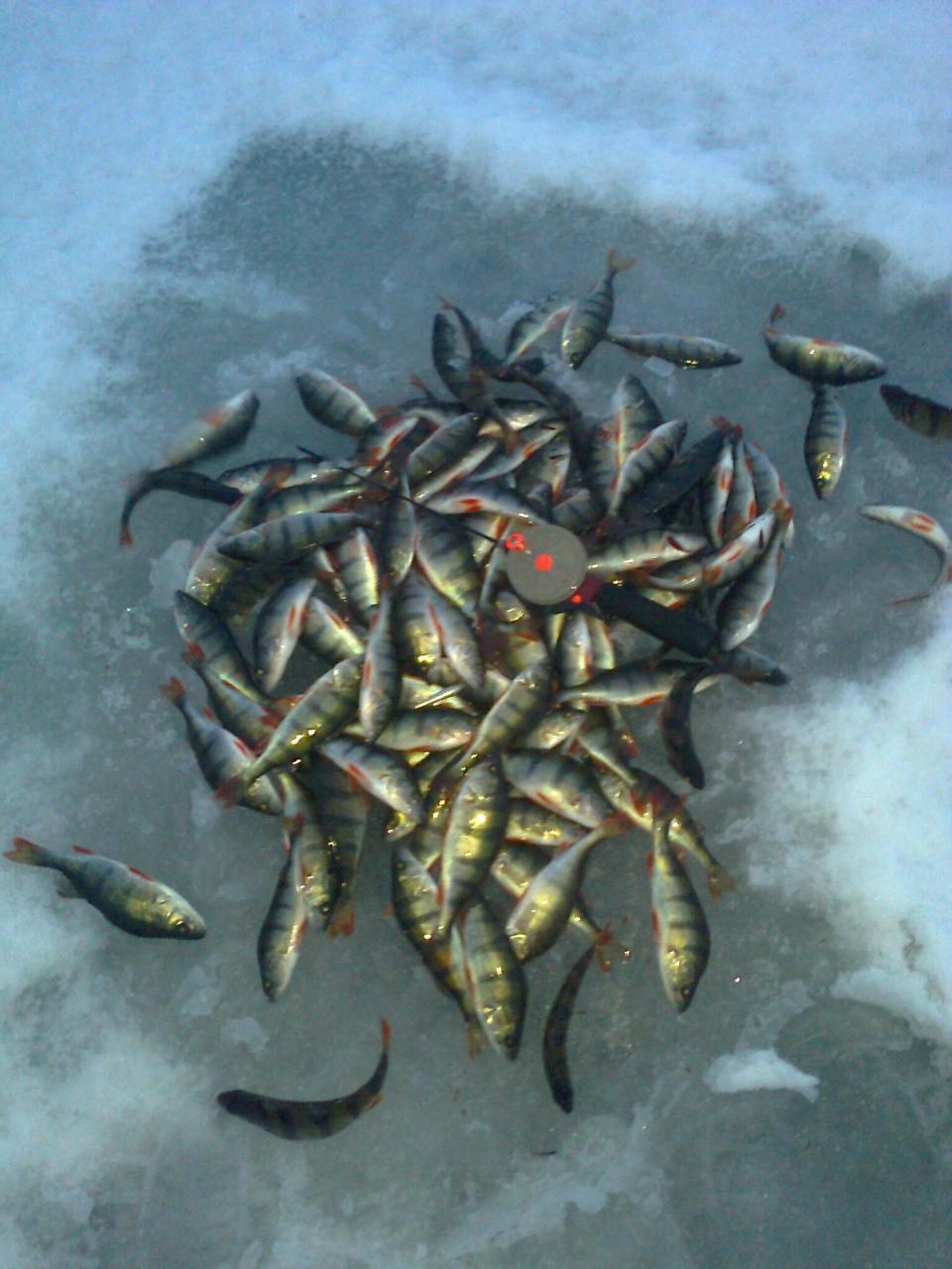 Сегодня Море,как бы извиняясь за прошлый СВЕРХСУПЕРМЕГАОТСОС подарило мне всего 2 лунки...Но это же были ЛУНКИ!!! На глубине 50см подо льдом на ковре дрейсесны коротал день плотный косяк сытенького окуня...Мордастиков в стае не было,но и планктон они за собой не водили....К 15 30 или я их всех забрал,или вожак увел их ужинать в другое место....Мощнейшее рассверливание не принесло даже тычка....Ну и ладно....Сегодня будет сниться вздрагивающая ниппельная резинка....