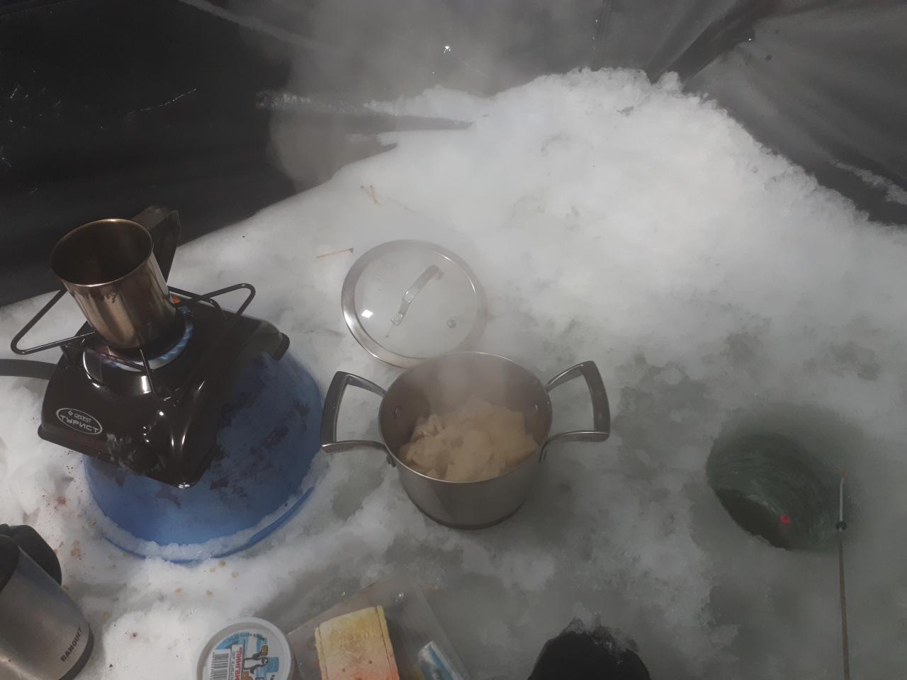 • Были сегодня в р-не Юности с 11 до 15 часов. Еще как-то смогли поставить палатку и 5 ставок с карасем. Людей и правда мало, а в округе только одна наша палатка и стояла. Несколько раз выбирались с палатки по делу и ставки проверить, так этот ветрило продувал казалось насквозь и руки моментально замерзали. Вдали виднелись и палатки и пингвины. Как эти пингвины могли в такой ветер и мороз сидеть вне палатки - это большая загадка. А в палатке конечно класс, даже лунки и те не замерзают. Только ветер сильно воет и пытается поднять твой домик. По рыбалке полный ноль, только была одно слабая поклевка и то может показалось. В три часа смотали удочки, ставки. А карася отпустили на волю, может будет жить. Палатку на таком ветре конечно сложить не смогли, просто скомкали и в пакет. Когда пришли на стоянку к машине, то там тишина, ветра нет, погода отличная, хоть назад возвращайся. А на берегу кто-то привез баню на колесах, растопил ее и вырезал прорубь для купания. Чтоб народ если будет возвращаться с рыбалки в темноте не угодил в эту полынью.