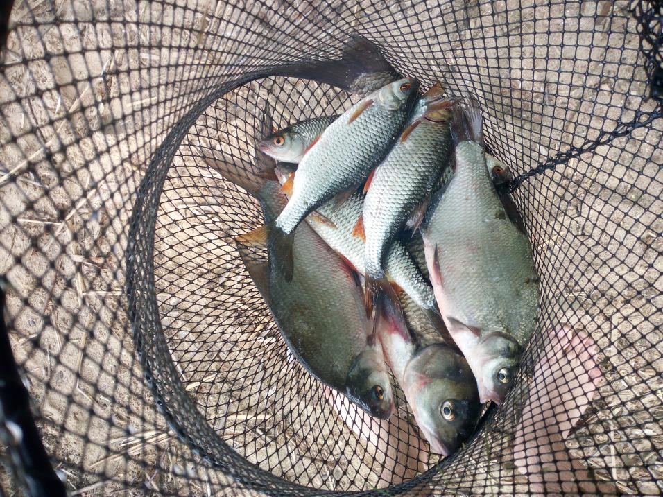 В улове первый лещик около килограмма, взял макорошки. Потом плотва, на мотыля с опарышем небольшой подлещик, но поклевки частые. (Мелочь вся в родную стихию - подростать)