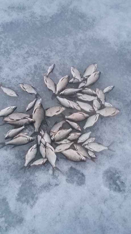 • Вечером вчера заехал на краб закормился, и в 5 утра уже сидел на лунках. В 6 ровно выловил одного на 900 грамм. А через минут 20 очередная выкладка, но не суждено. У леща даже голова в лунку не заходила, попытки забагрить, отпихивали его под лед.Бур 120.Вобщем сошел. Но радости все равно не было предела, я токого впервые видел, а тут еще, и под лункой потягал. Пускай живет, нерестится нам на радость. После схода клёв прекратился. С 9 утра начал клевать мелкий подлещик, бонусов больше не было. 6 метров, опарыш, мотыль; сухари, пшено, жмых.