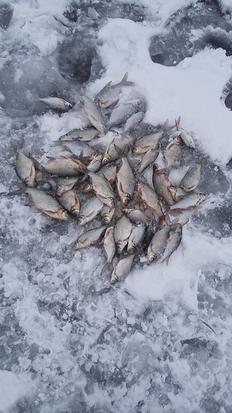 • Приехал сегодня к 10 часам. При выгрузке встретились ночники. У одного два подлещика: один вечером и один утром. У второго три штучки и то утром. Засверлил и закормил 6 лунок, глубина 6,6м, взял АБСОЛЮТ, пшено, семечки. До 12 видел только одну вялую поклевку. Пошел рассверливать старые лунки, благо не очень замерзли и сразу пошла небольшая плотка. Иногда из лунки было и по 3-4 штуки. Очень много пустых поклевок и сходов, то с полводы, то уже в лунке. Ловил на небольшую свинцовую мормышку и по три, четыре мотыля (хотелось Лешу взять). Взял только одного подлещика и один отпущен. Было и несколько мелких судачков и только два ершика. Плотвы поймал 41 шт. Абсолют совсем не работал, а старые лунки без закорма приносили небольшую плотву. В 16-30 домой.