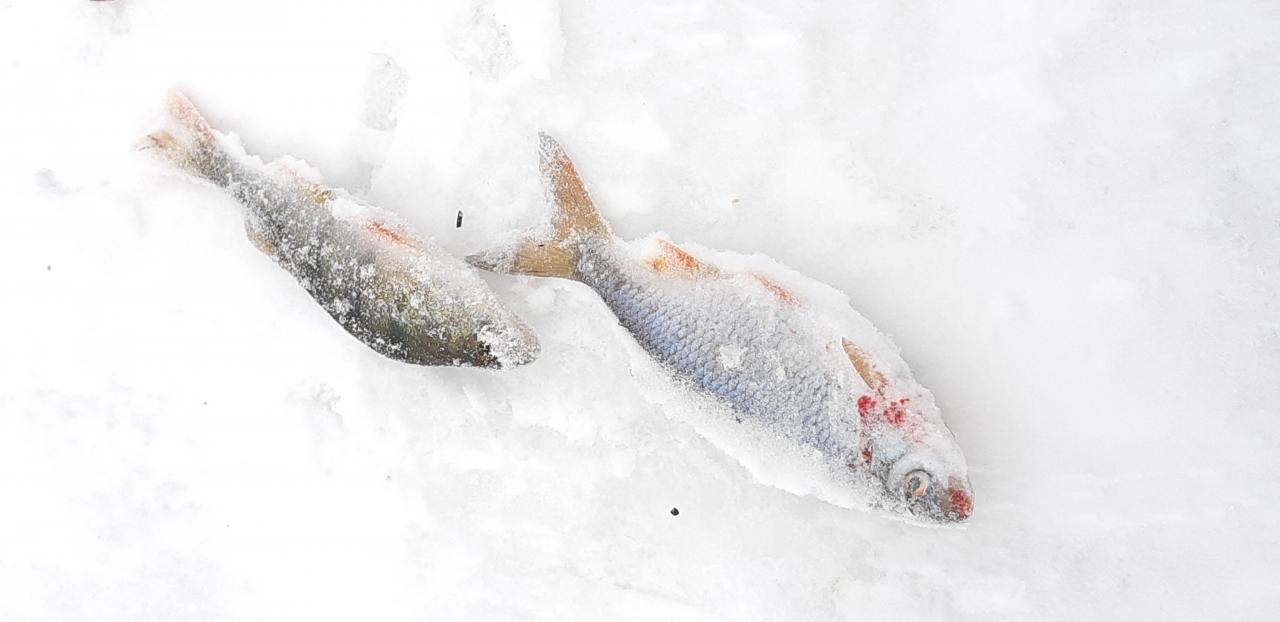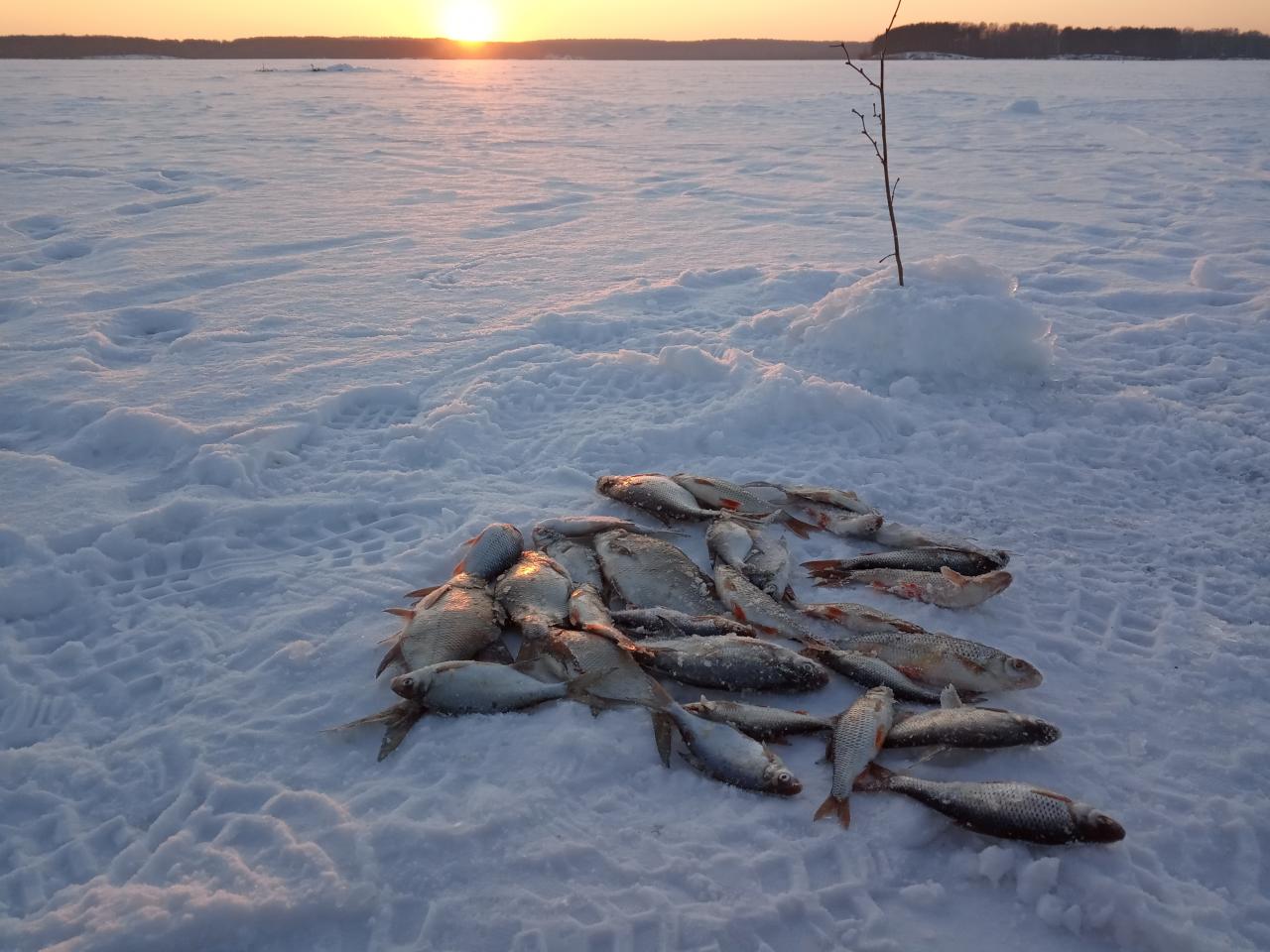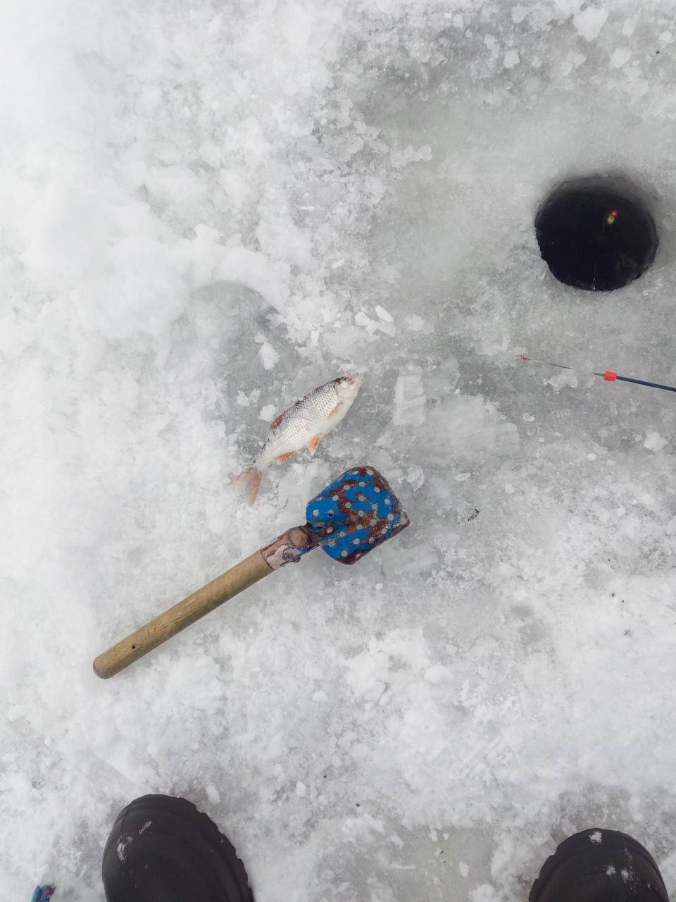 • 19 января посетил Минское море. Выходил с пятого пляжа. Прошел наверно с 1,5 км за острова. Сел где меньше народа, на глубине чуть больше 5 метров. Ловил в палатке на крючок и мормышку. Насадка: мотыль, репейник, опарыш, блин и плавленый сырок. Кормил: сухари, семки и немного мотыля. Поймал десятка два плотвы от 50 до 100 грамм. В "чистом поле" поставил пару ставок на карасика. Когда уже стало темнеть "загорелся" флажок - попалась щучка чуть более 2 кг. Рыбка на фото:Нажмите на изображение для увеличения.