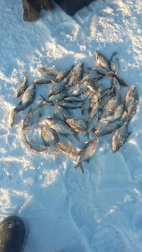• Сегодня с 8.30 до 17.30 на глубине 6м. Сухари-крючок-мотыль. С утра поклёвки были по уверенней, а потом шевеление и подъёмы. В общем денёк выдался морозным, солнечным и по рыбке более-менее удачным. Улов на фото:Нажмите на изображение для увеличения.