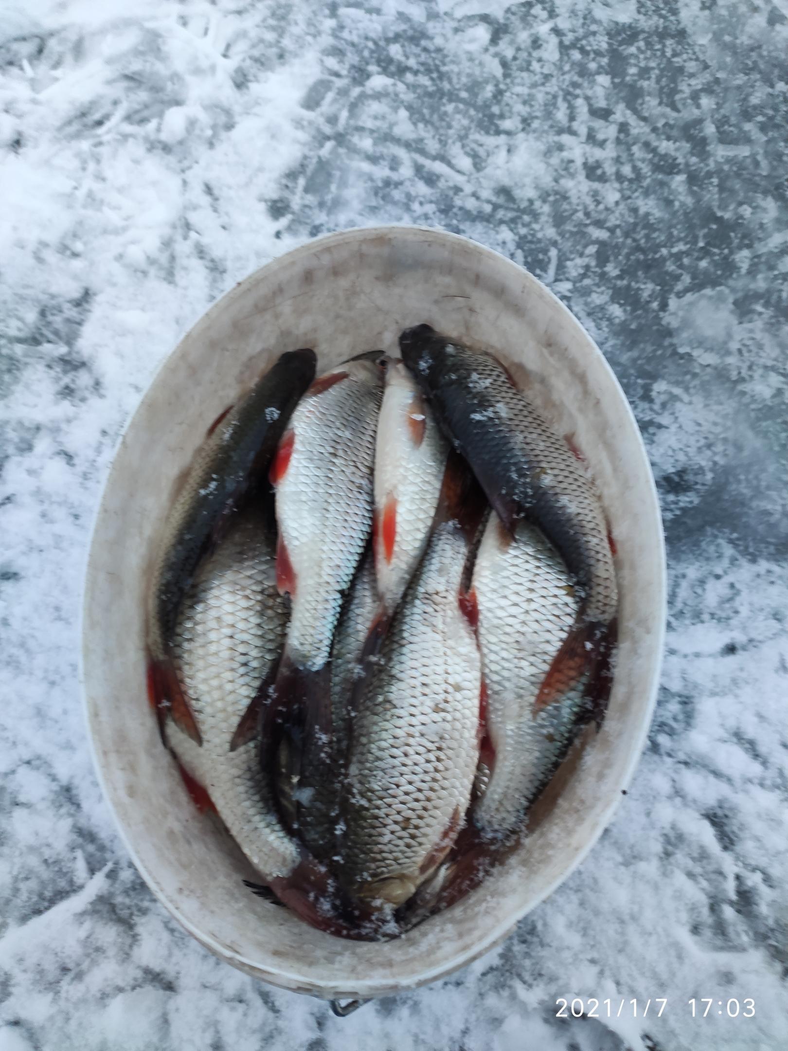 • Коротко. 4.01. Глубина около 7м. прикорм стандартный, мотыль, кручек, мормышка, 5,2 кг. 6.01. те-же лунки 4.5 кг. Плотва и подлещ.