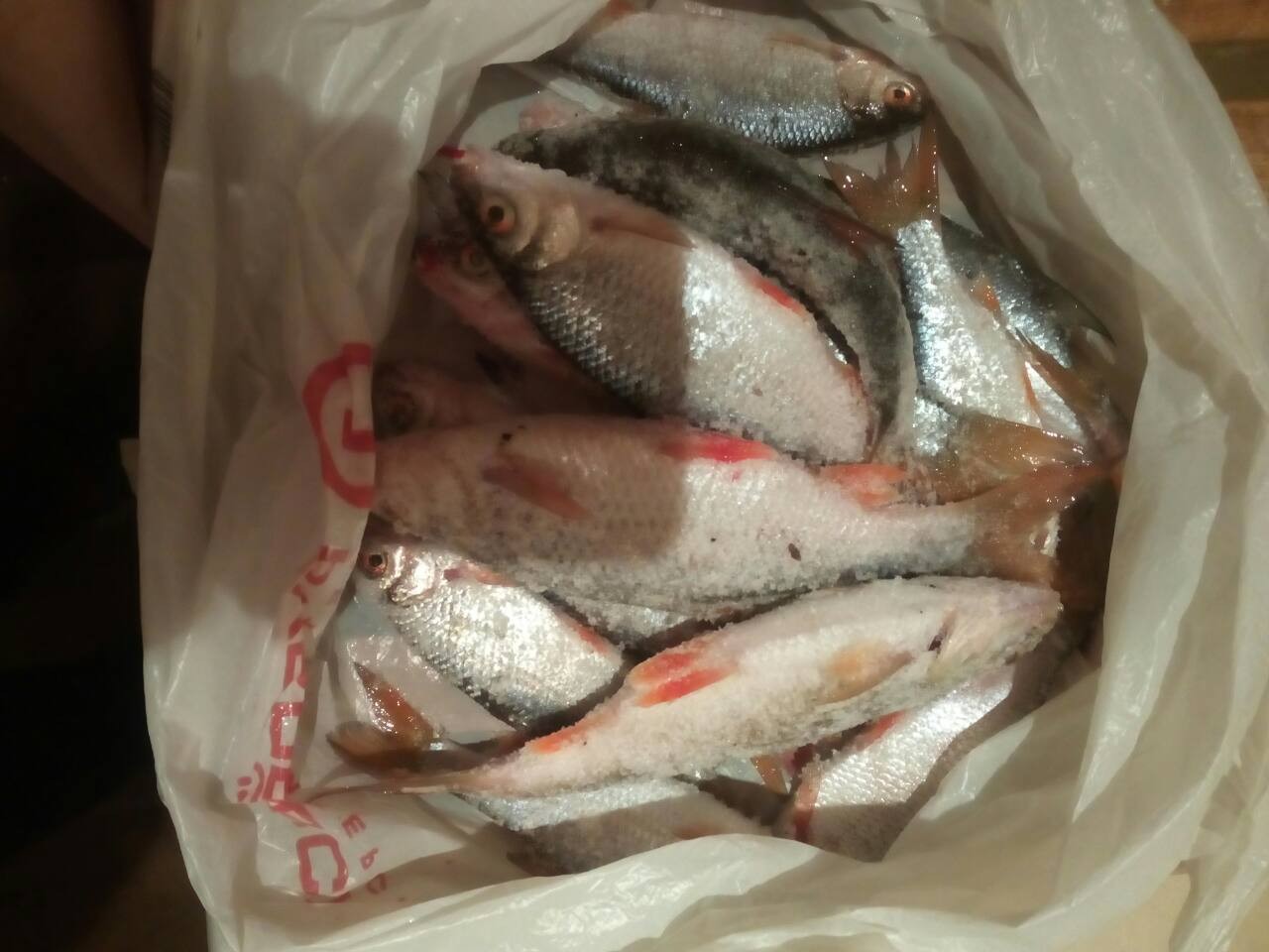 Вчера перед закатом пробежался по Минскому мору (района дамбы) по старым лункам в поисках плотвы. Людей много на русле, ветер просто жесть. Ловил на стоячку на крючок с подсадкой 1-2 мотыликов. На 1 лунке напал на хорошую жирную плотку, вся пойманная рыба с одной лунки.