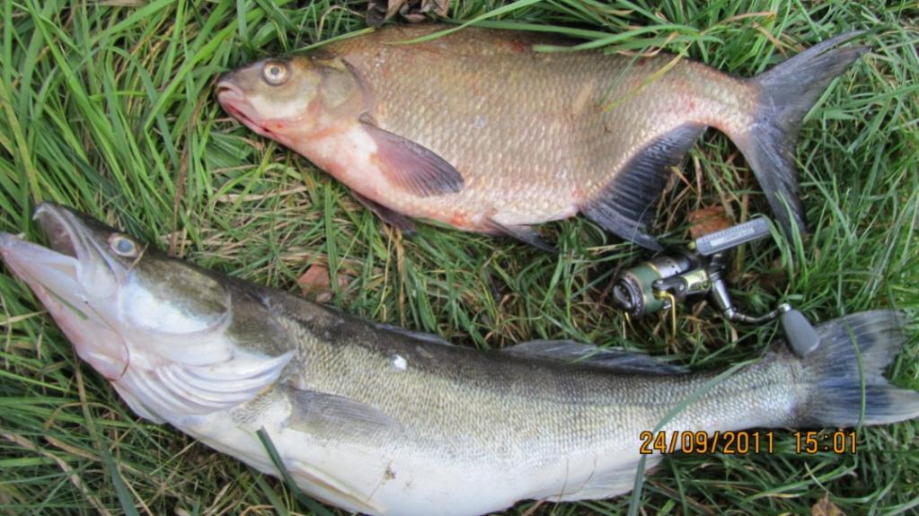 Думаю, побарахтаюсь немного по центру на волне. Стал на место. Первый заброс - зацеп, пришлось рвать снасть. Снова на место, несколько бросков, и вот он клыкастый, притом хороший. Несколько приятных минут вываживания и трофей в сачке (3,3кг). Через минут пятнадцать вдруг почувствовал хорошую тяжесть и, практически сразу на поверхности появился плавник крупного леща (2,5кг). Не ожидал, что так долго придется его вываживать, фрикцион трещал минут десять. Когда взял в подсак, обнаружил, что зацепился то лещ за нижнюю губу. С судаком все ясно, такое бывает часто, то ли он играет так с рыбкой, то ли душит ее, а потом жрет.