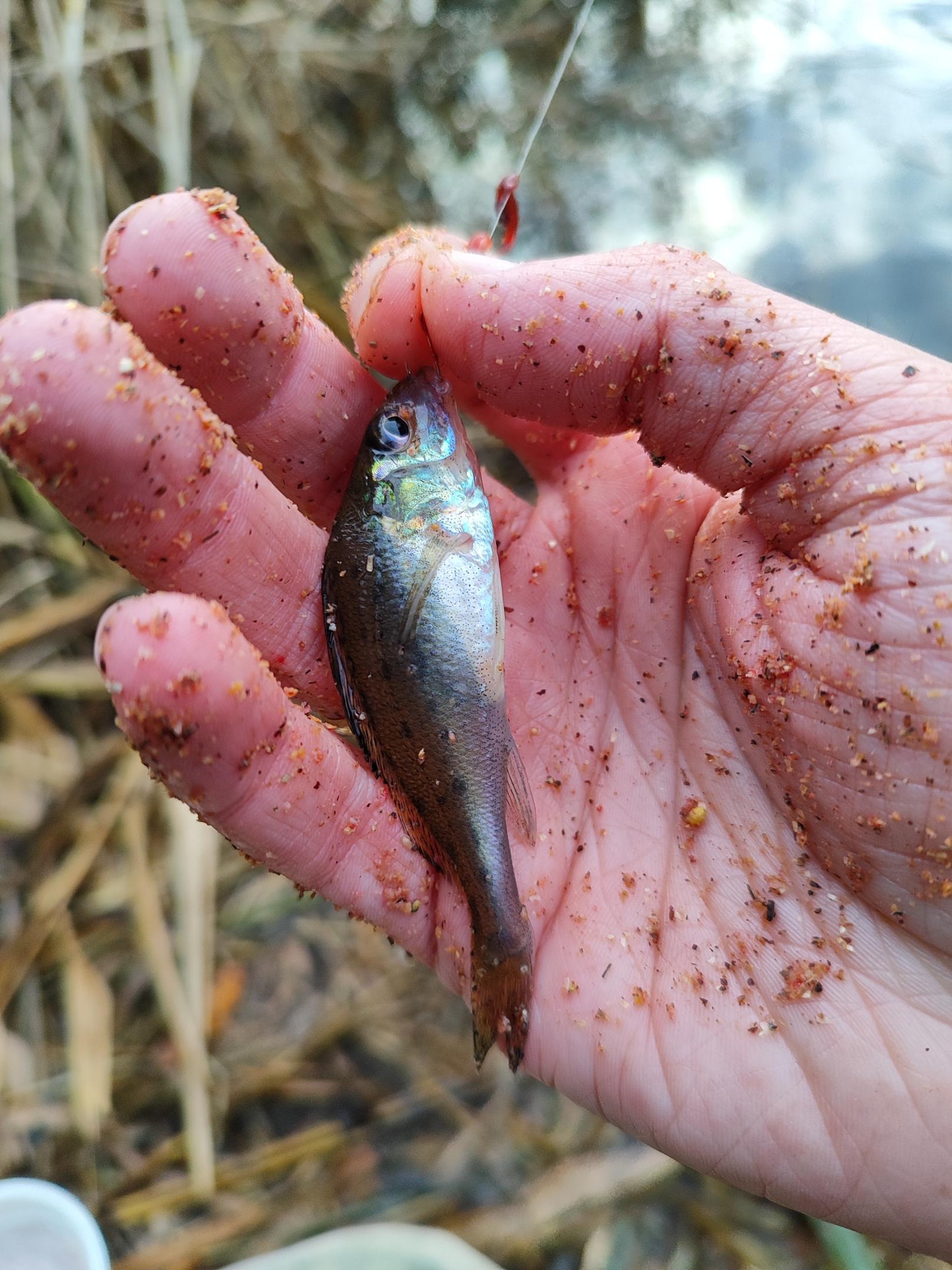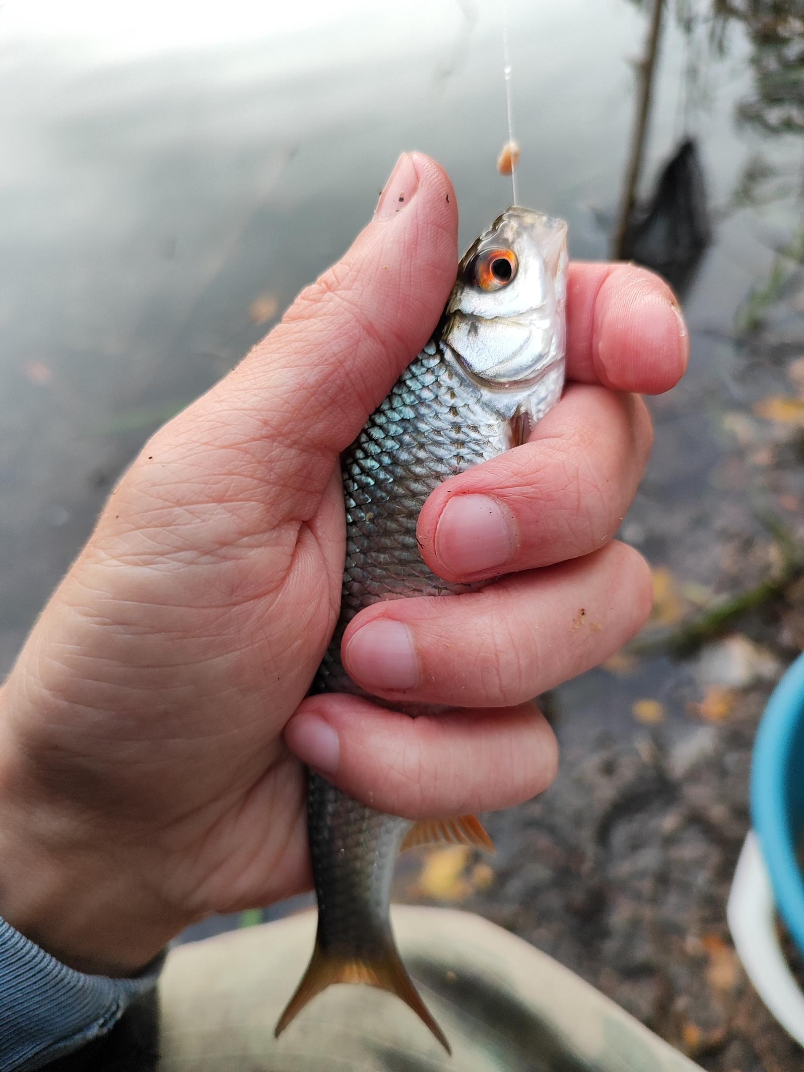 • Сегодня тоже был, но на полчасика раньше. Мое место было занято, сел на соседнее. Уходящий рыбак пожаловался, что сегодня одолевает мелкая плотва. Предполагал, что дело в прикормке, потому как его товарищ ловил на тяжелый корм с горохом и кукурузой, и клевали подлещики. У него же был рс-плотва. Хм, у меня такой же... ну буду пытаться.