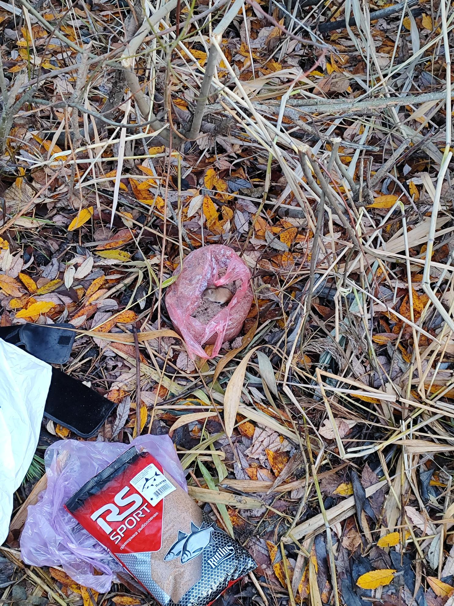 Замешал всего понемножку, а то многовато всяких остатков ношу с собой, надо высыпать - рс плотва спорт, абсолют жареные семки, немного красного трапера для цвета и сверху приправил карасевым трапером (уж очень у него стойкий запах, мне кажется можно любой корм им посыпать). Грунт не добавлял, в общем, просто немного прикормки с расчетом на час-полтора ловли.