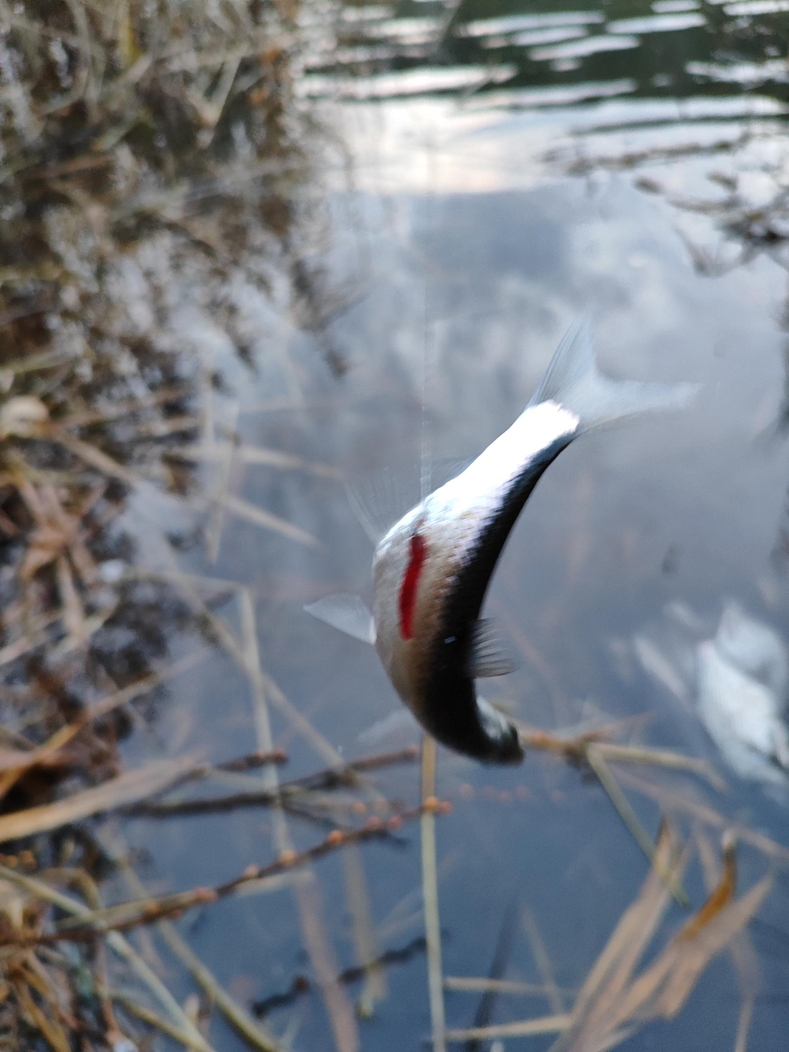 За ним три живцовых плотвички подряд, красноперка!, ну а затем снова пошел размеренный клев приятной фанерки. Один раз на перезабросе забагрилась уклейка - может и эту рыбку можно пробовать ловить.