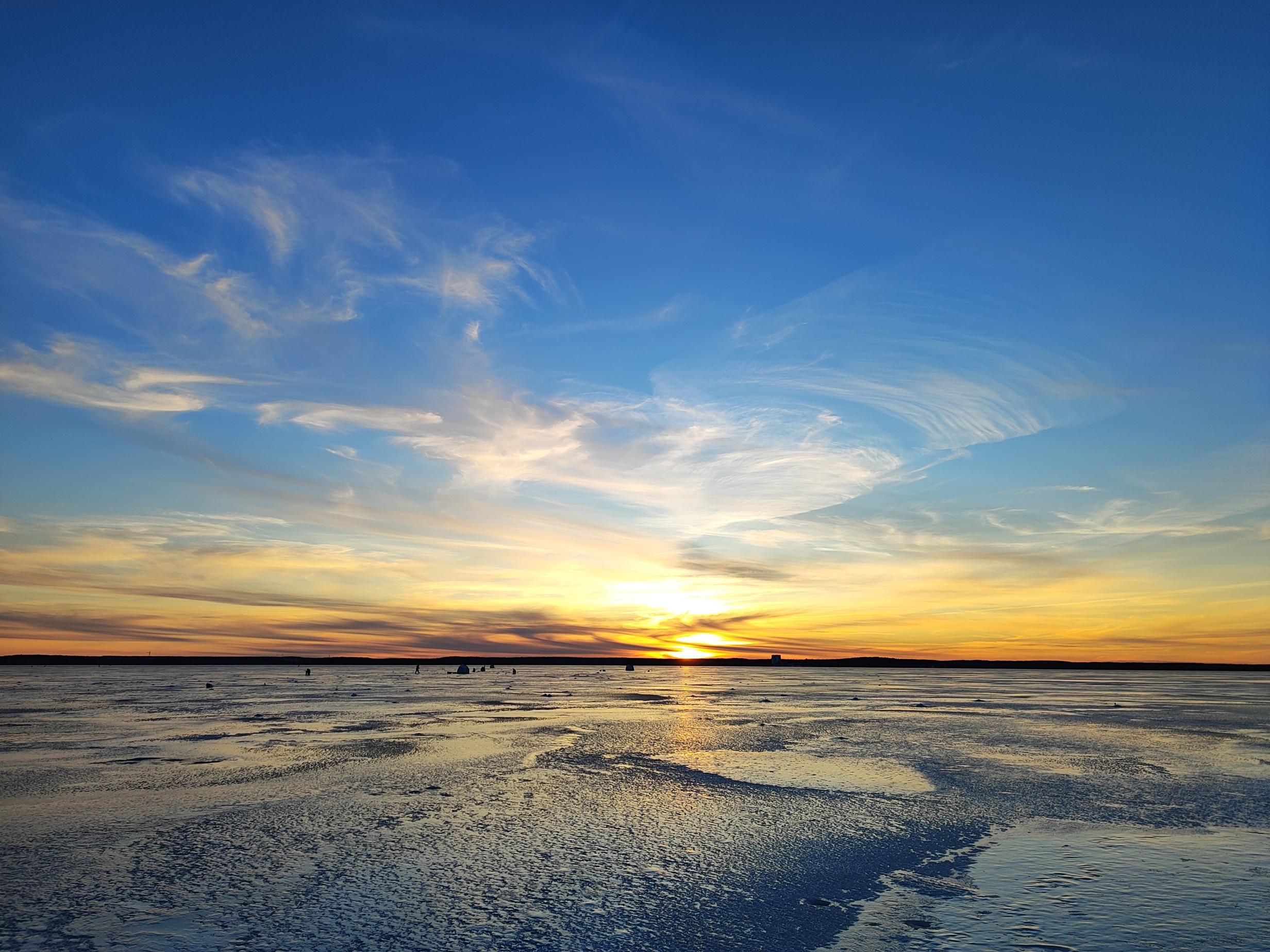 Состояние льда пока неплохое. Заходил и выходил со стоянки автомобилей в Ратомском заливе, не доезжая до Юности полкилометра. По сухому.