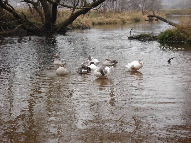 ID:	3344192. Меняю шнур, перевязываю сухарика, направляюсь в обратную сторону. Повезло наблюдать массовый вылет и роение ... деревенских гусей! Как пьяный десант шумно садились на так понравившиеся мне плесыНажмите на изображение для увеличения.