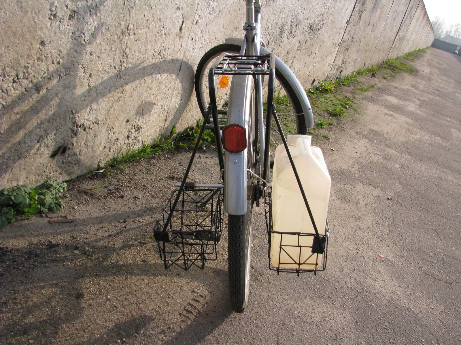 Центр тяжести значительно ниже, чем при применении подвесных сумок, не говоря уж о корзинке на багажнике сзади ( а тем более спереди), поэтому управлять велосипедом значительно легче. Даже когда везешь две канистры по 10 л. воды.