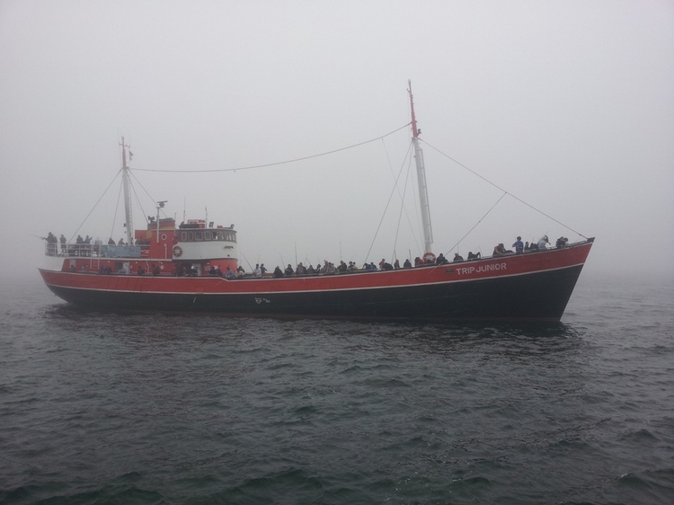 на судне было человек под сотню, стояли все плечем к плечу, ловили вот так