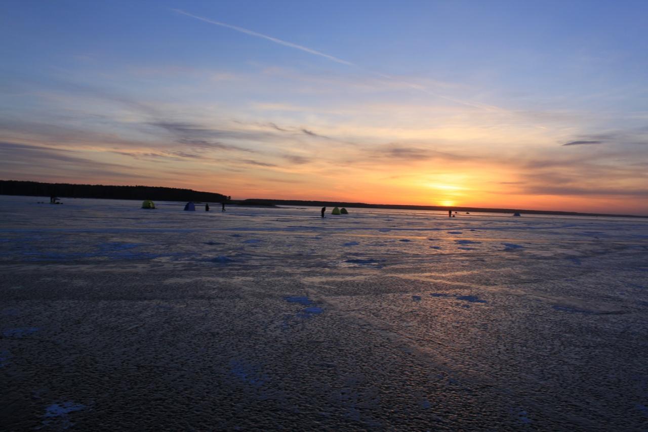 Дождясь 10 утра клева нет и у меня уже чемоданное настроение. Всхоре к 12-13 проснулся наш извозчик) говорю собираемся? Он мне наверное да), я подтверждаю сбор. А ветерок та на половину стих и солнце светит. Тратата душа радуется солнцу. Все собрали упаковали остался пол и палатка, обабили замерзший сантиметровый конденсат, обобили почистили скрутили пол. Теперь самый финиш - снять палатку. Выкручиваем вертыши оставляем один - по технологии установки палатки, что бы не улетела в вилейку:-) чистим юбку от примерзшей мокрой шуги и складываемся и упаковываемся в чехол. Собрались в три раза быстрее чем разрбрались. Ждем остальных и едем домой под солнечную погоду и приятный прогноз погоды по радио на дальнейшие дни.