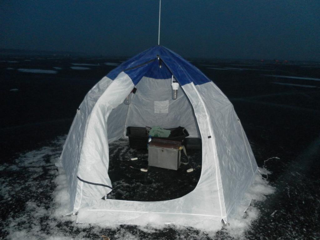 :mad:. В палатке одну из крайних лунок закормил мотыль с сухарями, и еще пару чистым мотылем. Остальные лунки кормил мотылем с сухарями. Оставляю товарища в палатке, а сам бегаю с чертом по лункам. В одной из лунок попадаю на стаю окуня. Сразу пошел мелкий окушок - несколько штук вподряд грамм по 70, затем на втором круге, попался грамм на 150 и на третьем круге с этой же лунки окунь на 250 грамм. Потом тишина. Завтракаем пельменями с по 50 коньячку. Еще пару кругов на улице не приносят результата, тогда как в палатке с чистомотылевых лунок клюнули два подлещика, а на сухаревых лунках - толпа ершей. Перебираюсь в палатку. В течение пары часов еще пара подлещиков и в следующие несколько часов - исключительно ерши. Отдыхаем и слушаем гул рыбаков вокруг. С виду показалось что рыбаков тыщи три на льду... часика в 3 - напарника сморили очередные 50, он засыпает. Я делаю очередной докорм мотылем и подумываю не поспать ли самому, но, около 4 часов, всплывший поплавок напрочь прогоняет сон. Подлещик грамм 600. Думаю ну наверное один залетный, но тут то и началось... :) Иногда не успевал на две удочки - клевало на обеих сразу. через час- полтора клев приутих. Досыпал с метра над дном еще по пол кормушечки. И клев снова возобновился, но послабее чем сразу. Вобщем я на третей лунке еще успевал чертом баловаться. Игра чертом заметно активизировала поклевки на соседних поплавочных лунках. В итоге, играя чертом, я смотрел на поплавки и в один прекрасный момент лишь краем глаза увидел как выпрямился кивок, прямо у меня перед носом. Я подсек и почувствовал что кто-то приличный повис на "другом конце лески". Леска 0.12 растягивается при вываживании, но я не тороплюсь и беру леску подушечками пальцев, приотпуская леску во время рывков. Багор под руками и вот он "почти-лещ" на льду. Завесил на 950 грамм.