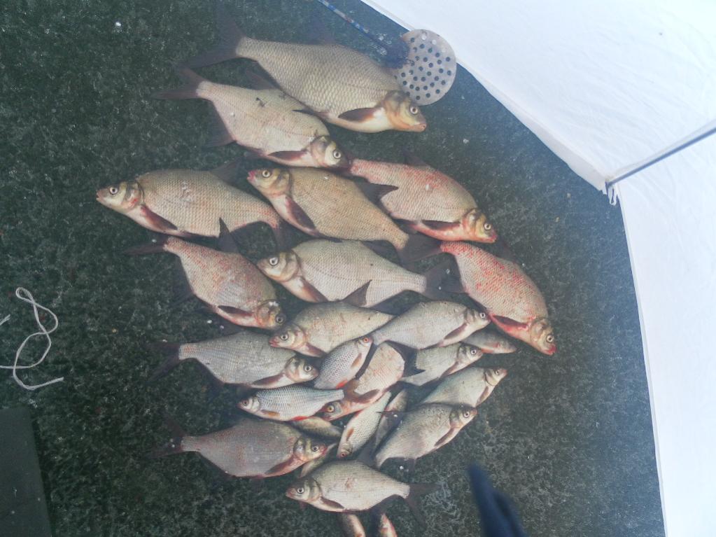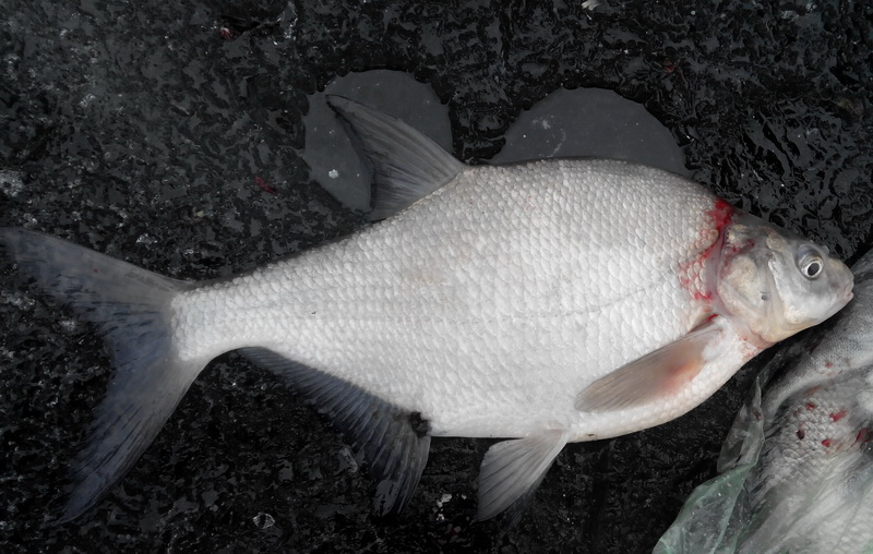 . Первая поклевка без предворительных предупреждений около 23 ч вечера и мерный подлещ на льду. Второй, тоже неплохой, заставил поплавок всплыть лишь около 2-х ночи. До 4-х утра влетело еще две фанеры, размер которой оставлял желать лучшего :(. В районе 5:30 началось шевеление поплавков во всех трех лунках, но, так называемого "эльдорадо" не было и в помине. Выкладки были редкими, но размер подлеща устраивал. Поклевки хорошей рыбы продолжались до момента, пока не клюнул бонус