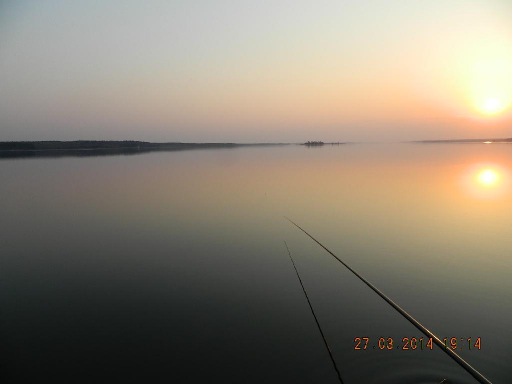 • 25 -го марта мы снова посетили ВВ, (Нестерки около камней). На этот раз с лодкой. Поплавали, ничего не поймали. Эхолот показал неимоверное количество рыбы по всему руслу! От самого дна до 1,5метра от поверхности. Решили попробовать половить на фидера ночью. Забросили два, сели ждать... Но у леща были совсем другие планы:). Олег пошёл спать, ему за руль, а я честно отсидела всю ночь. Было тепло и тихо. Не клевало...Встретила вот такой бесцветный рассвет: Нажмите на изображение для увеличения.