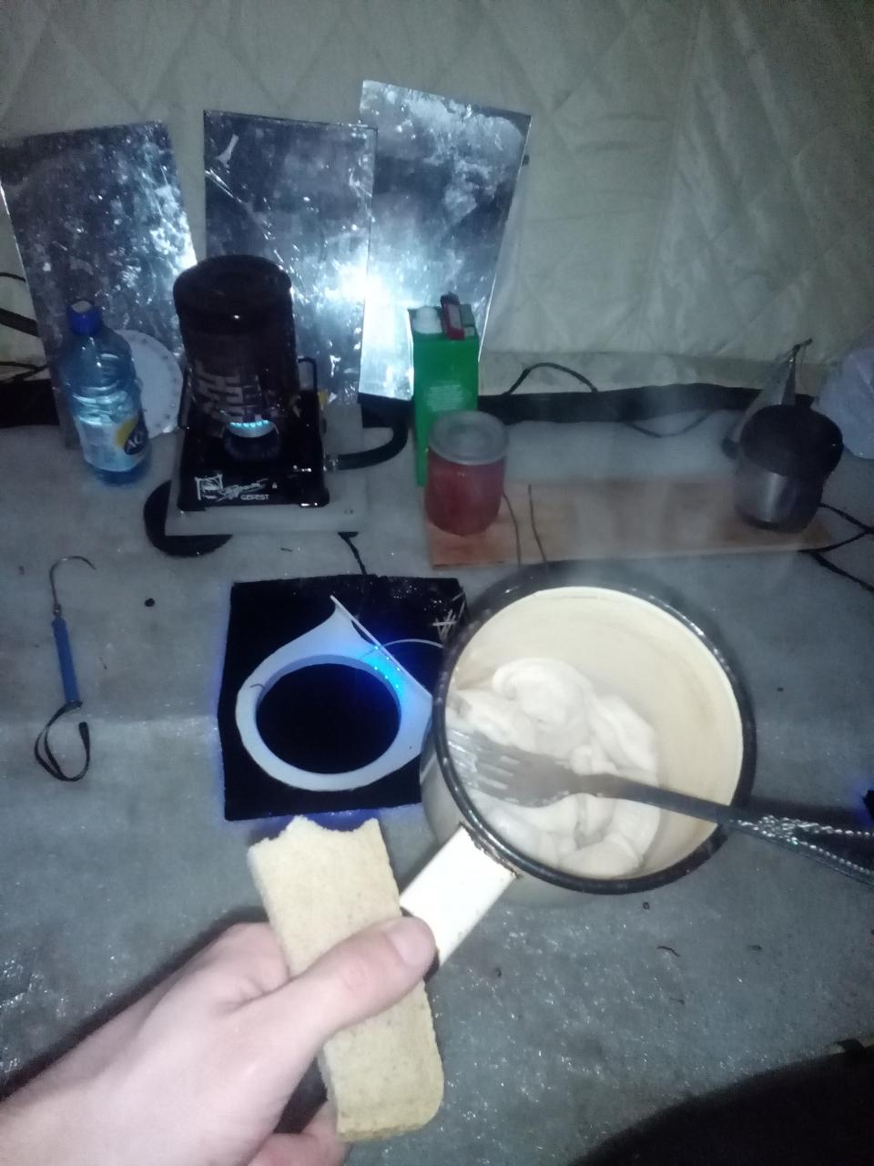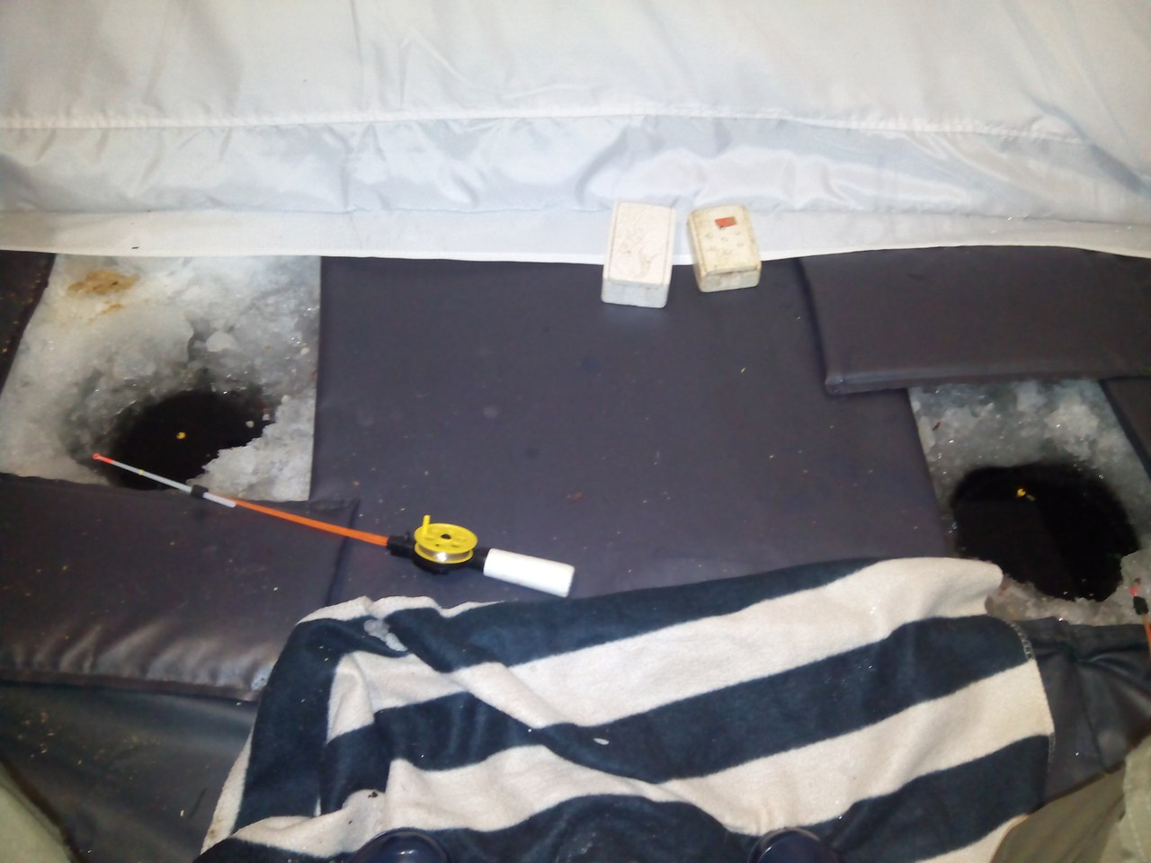 • Острова, русло. Были двумя палатками с субботы на воскресение. Кормили панировка, семки и кормовой мотыль. За ночь в моей палатке одна поклевка и ерш на льду. У товарищей ничего. Эхо показывало набегами рыбу у дна, но видимо очень сытую. Днем, на четверых, начертили 6-7 кг ассорти к пиву. Рядом сидящие, тоже курили. Как- то так!