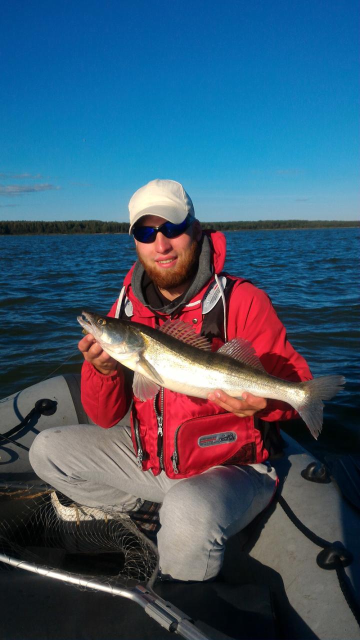 ,небольшой перекус и было принято решение немного вздремнуть.Проснулись так сказать слегка позднее чем планировали на целый час.Утренний кофе быстро взбодрил нас и вот мы уже качаем лодку . Грузим снасти и вперёд по прошлогодним местам.Тишина.Далее встречаем экипаж друзей которые неплохо знают водоём и поговорив с ними подсказывают где примерно стать и цвета приманок на которые идут поклёвки,ну а далее по эхолоту пробиваем со всех сторон большую до боли банку с 3.5 на 7 метров.Поклёвки сразу же начались , но вот размер судака оставлял желать лучшего и после фотосессии отправлялись подрастать .Были и такие экземпляры