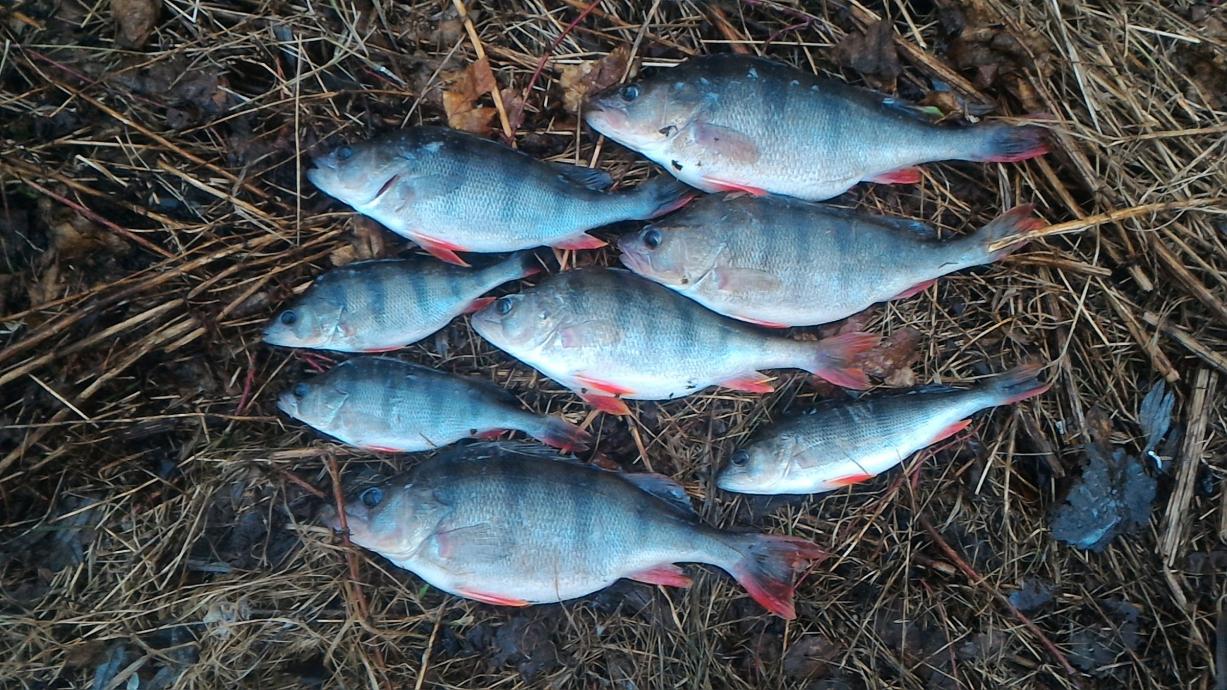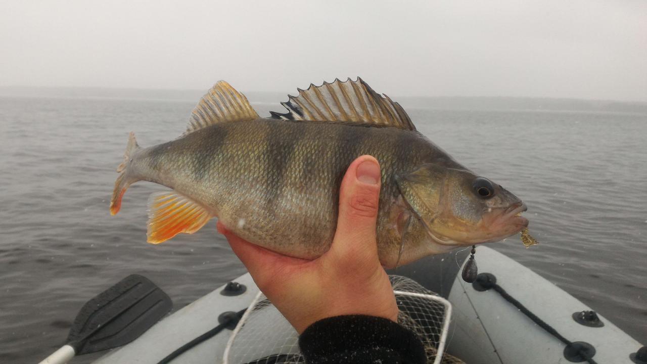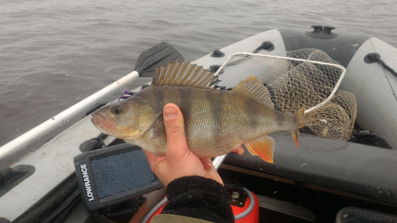 Первые 2 дня по закоряженным свалам достаточно хорошо брал неплохой окунь - несколько экземпляров превысило планку в полкилограмма. Температура воды по эхолоту в эти дни была 2.8 - 3 градуса.