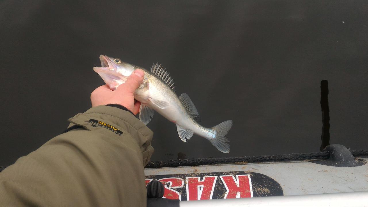 30 марта вода прогрелась до 3.8 - 4 градусов, и окунь брал значительно слабее, вероятно начал уже задумываться о нересте. Однако начал проявлять активность судачок. Работала вялая придонная проводка с паузами до 5-ти секунд.