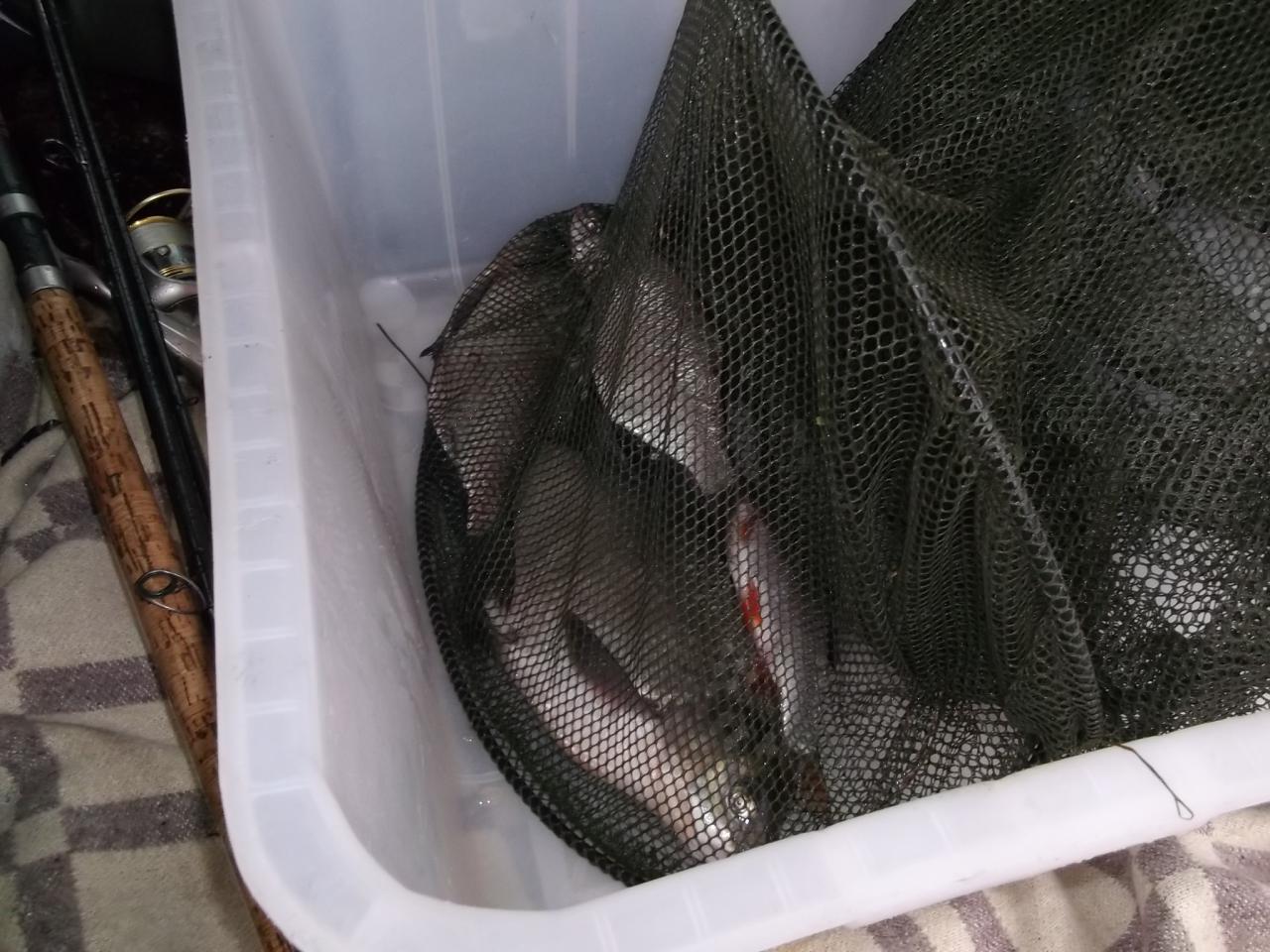 В его улове пара-тройка пра-пра-правнуков лещей, которые отправились назад и плотка-недомерка в количестве ок. 10 хвостов.
